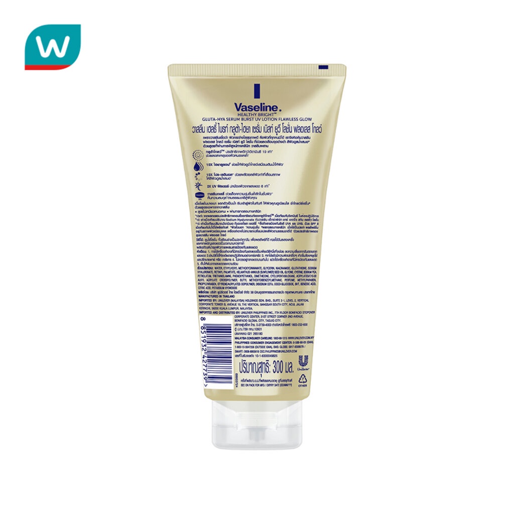 Vaseline วาสลีน เฮลธี้ ไบรท์ กลูต้า-ไฮยา เซรั่ม เบิสท์ ยูวี โลชั่น ฟลอเลส โกลว์ 300 มล.