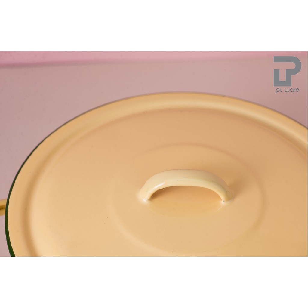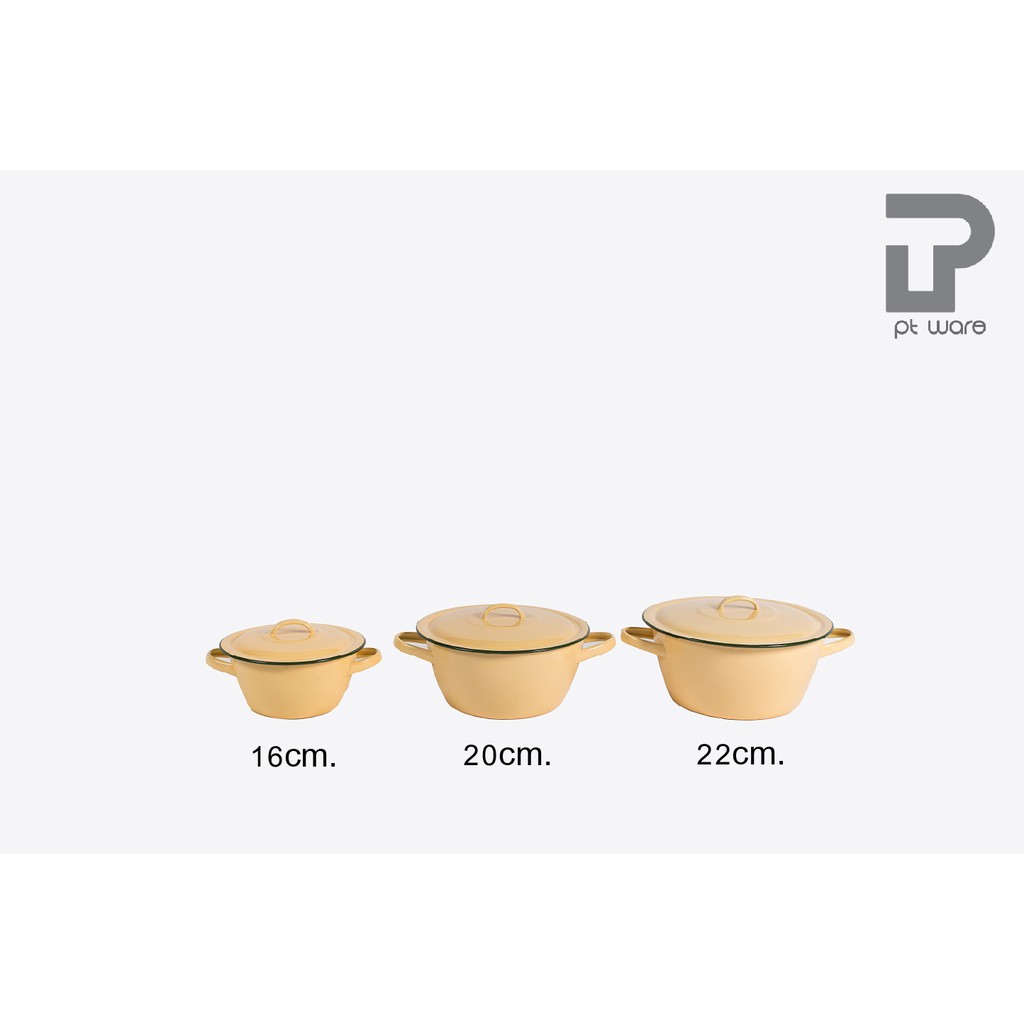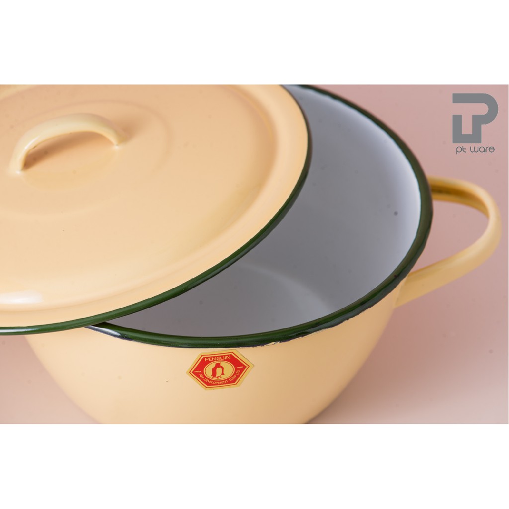 หม้อ หม้อเคลือบ 2 หู หม้อเคลือบอินาเมล หม้อสองหู สีเหลือง ตรานกเพนกวิน ขนาด 16-24cm