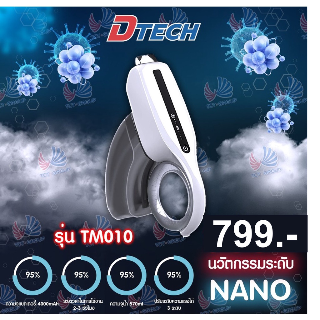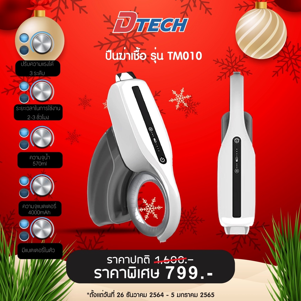 ปืนฆ่าเชื้อนาโนไร้สายแสงสีฟ้า Dtech รุ่น TM010 ปืนฉีดพ่นฆ่าเชื้อ ปืนพ่นฆ่าเชื้อ ปืนฉีดฆ่าเชื้อโรค (ประกันศูนย์ 3 เดือน)
