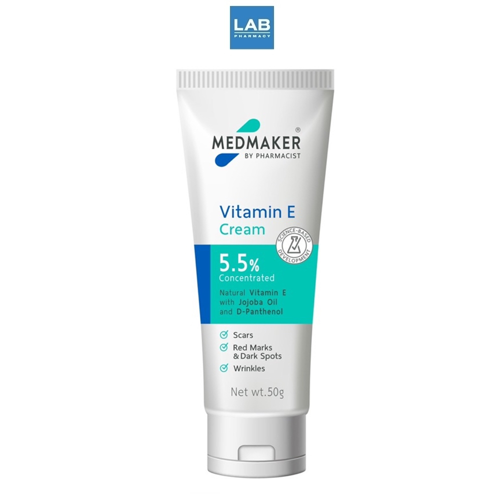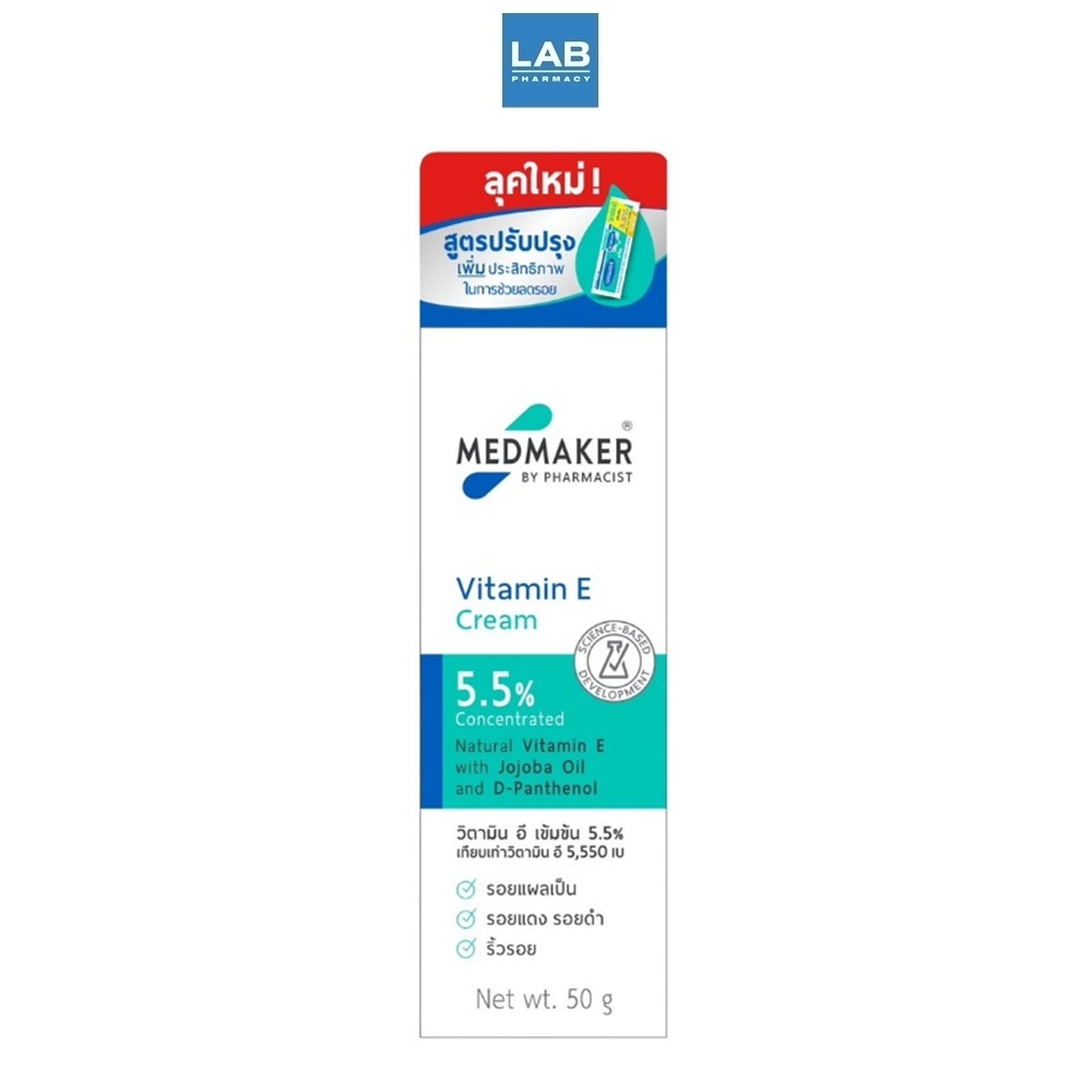 Medmaker Vitamin E Cream 5.5% 50g. - เมดมาร์คเกอร์ วิตามินอี ครีม ลดรอยดำ รอยแผลเป็น จากสิว ลดเลือนริ้วรอย 50 กรัม