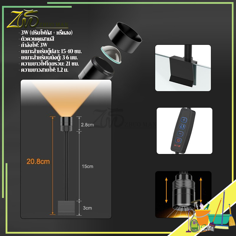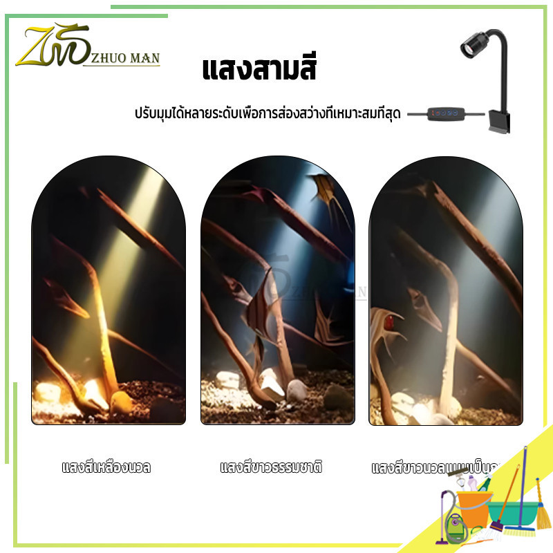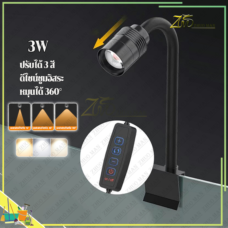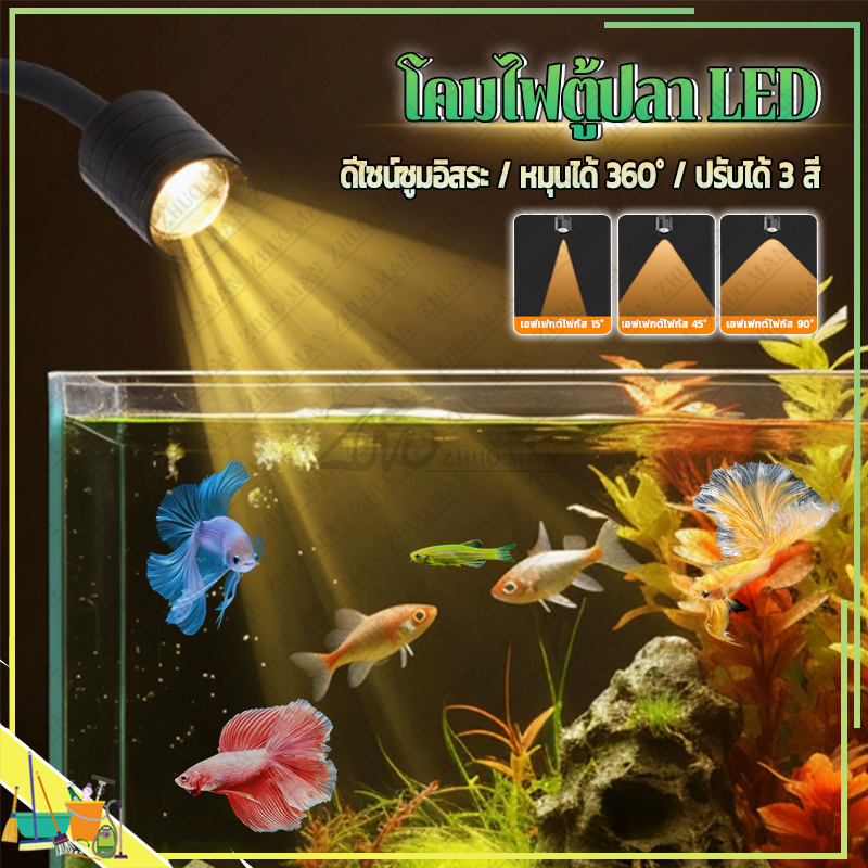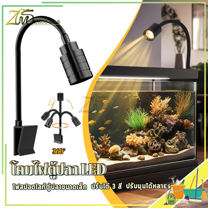 ไฟตู้ปลา LED ไฟเลี้ยงตู้ปลา ไฟคลิปตู้ปลา ไฟกันน้ำตู้ปลา การหรี่แสง ซูมได้ หมุน 360° สำหรับตู้ปลา เหมาะสำหรับปลาประดับ