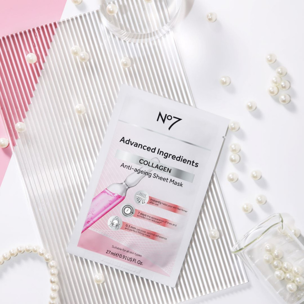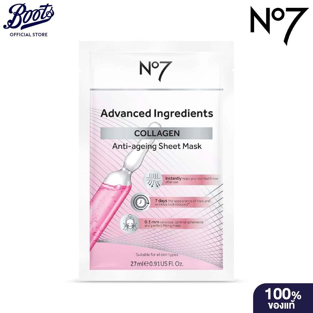 No7 Advanced Ingredients Collagen Anti-Ageing Sheet Mask 27 ML. นัมเบอร์เซเว่น ชีท มาส์ก