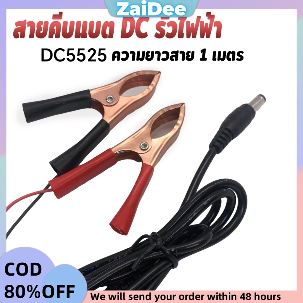รุ่นDC5525 สายคีบแบต DC รั้วไฟฟ้า หลอดไฟโซล่าเซลส์ คีมแบตเตอรี่ ดำ-แดง Alligator Clips