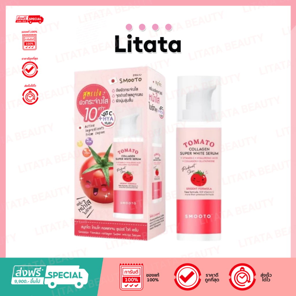Smooto Tomato Collagen Super White Serum สมูทโตะ โทเมโท คอลลาเจน ซูเปอร์ ไวท์ เซรั่ม 30g