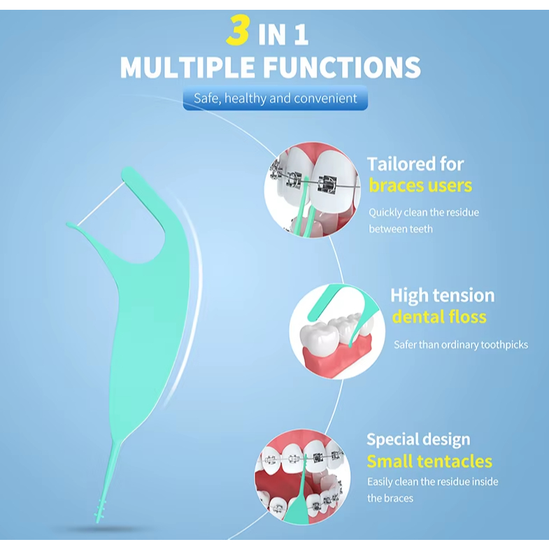 ไหมขัดฟันแบบมีด้ามจับ สำหรับคนจัดฟันโดยเฉพาะ floss picks 1ถุง 50ชิ้น พร้อมส่ง