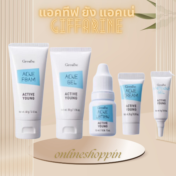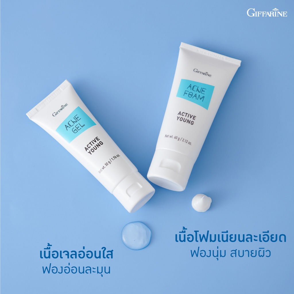 โฟมล้างหน้า เจลล้างหน้า ครีมแต้มสิว แอคทีฟ ยัง แอคเน่ กิฟฟารีน Giffarine Whitening Gel Active Young
