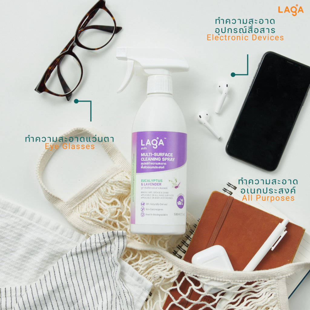 LAGA ลาก้า สเปรย์ทำความสะอาดพื้นผิวอเนกประสงค์-ยูคาลิปตัสและลาเวนเดอร์ Multi-Surface Cleaning Spray-Eucalyptus & Lavende