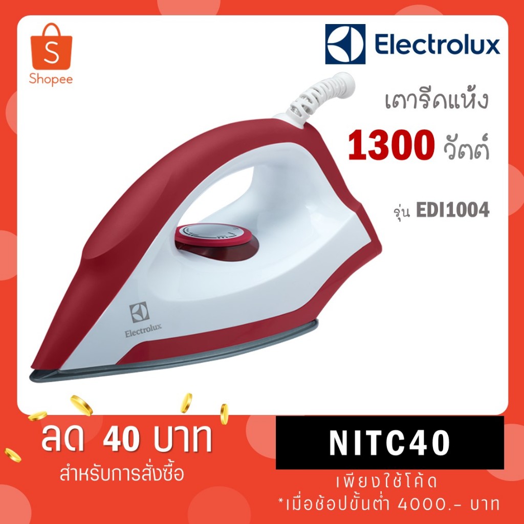 Electrolux เตารีดแห้ง หน้าเตาเคลือบ กำลัง 1300 วัตต์ สีขาว-แดง รุ่น EDI1004 EDI-1004