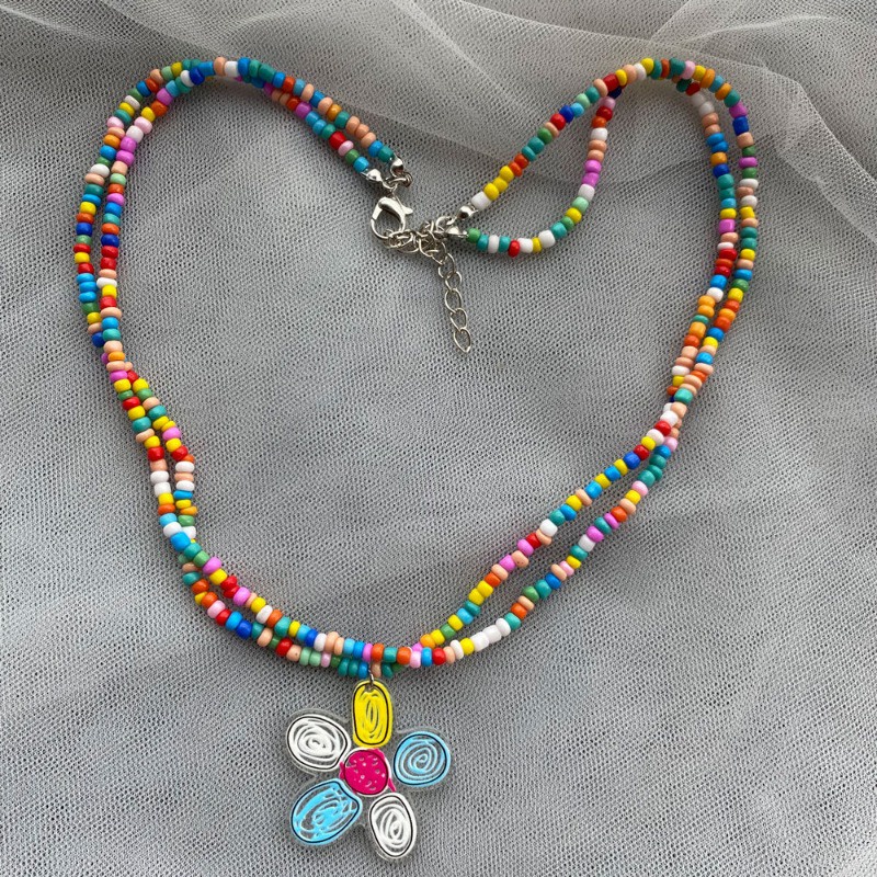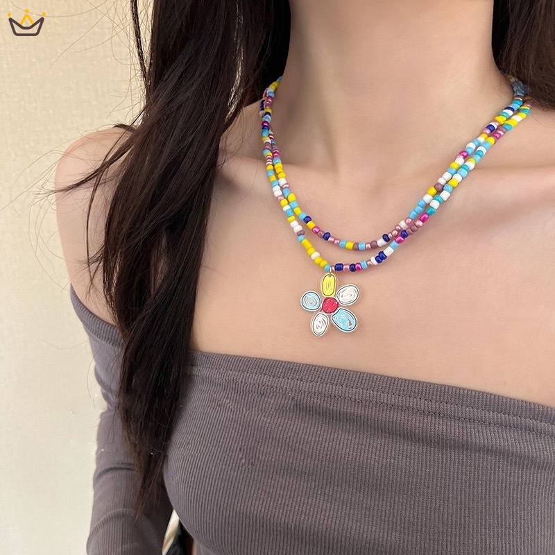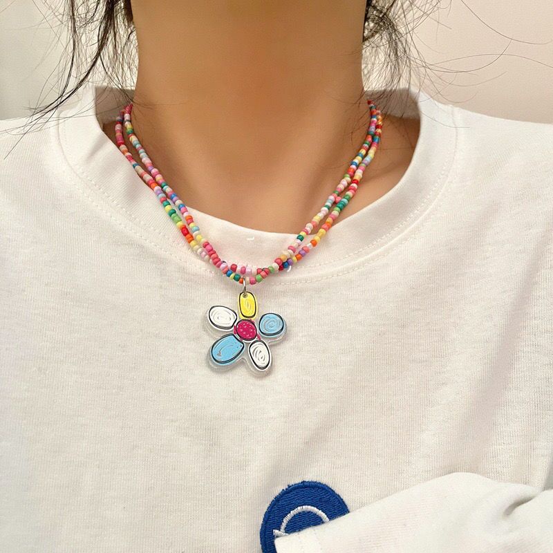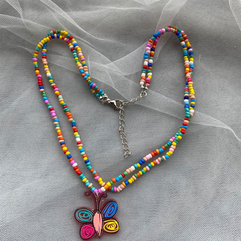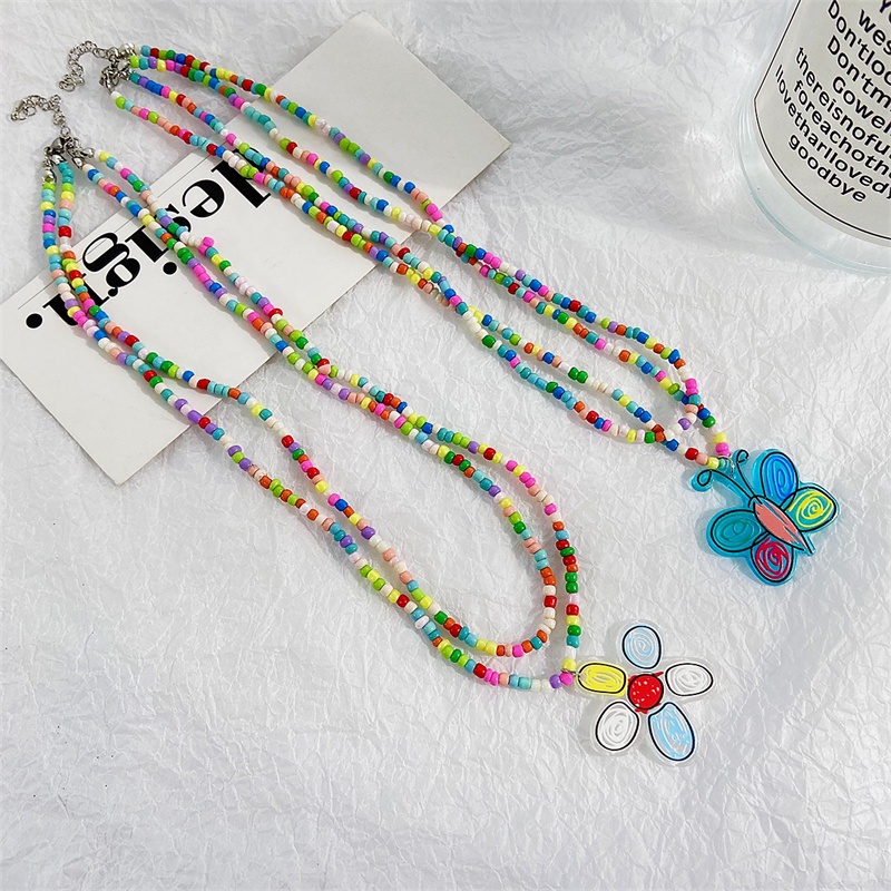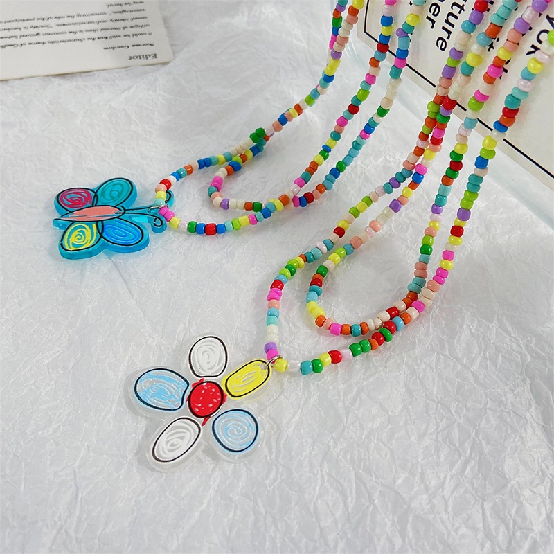 สร้อยคอโซ่สั้น จี้ลูกปัดดอกไม้ ผีเสื้อ หลากสี เครื่องประดับแฟชั่น สําหรับผู้หญิง YUE
