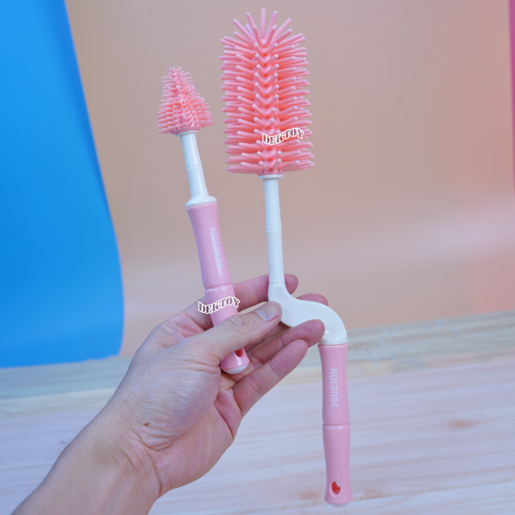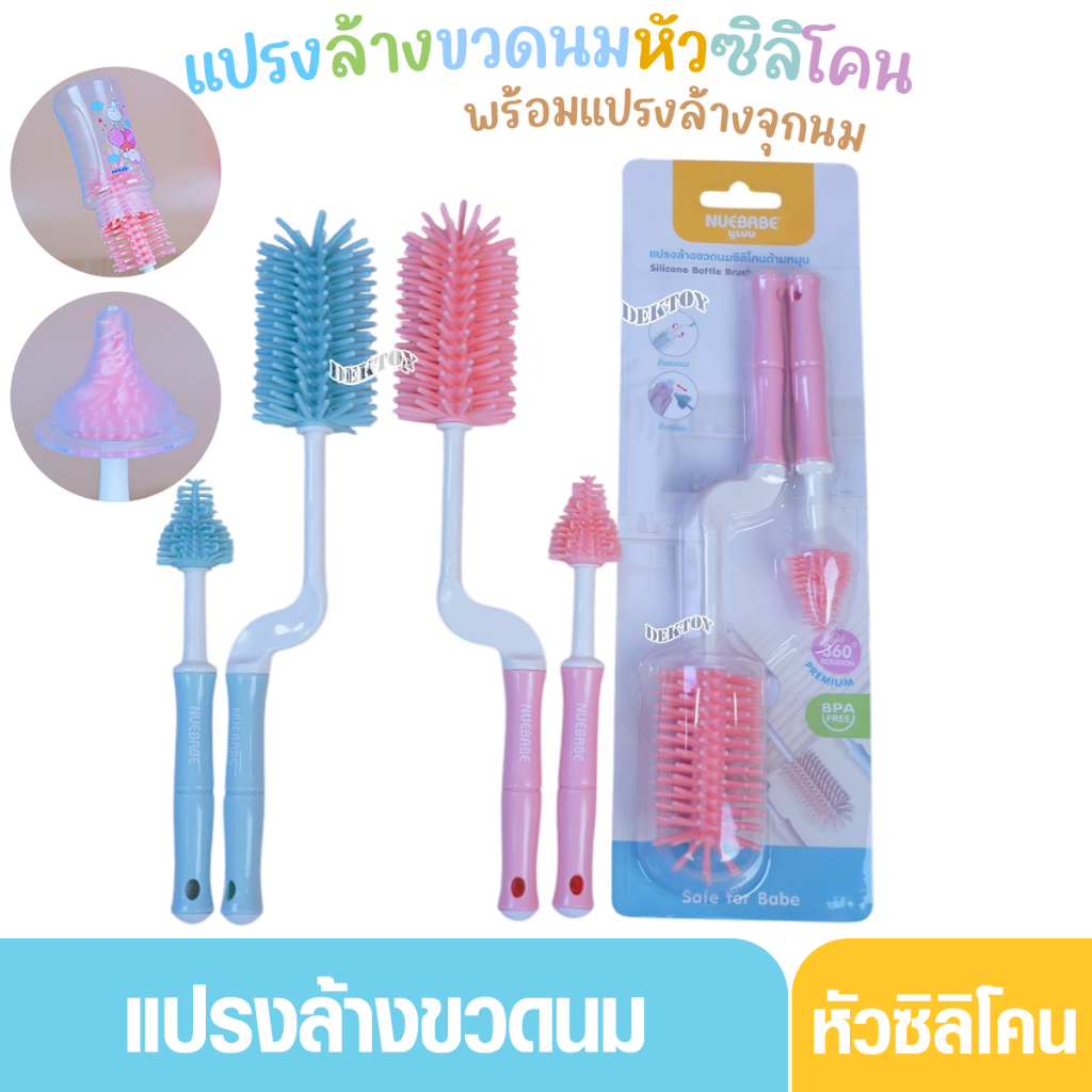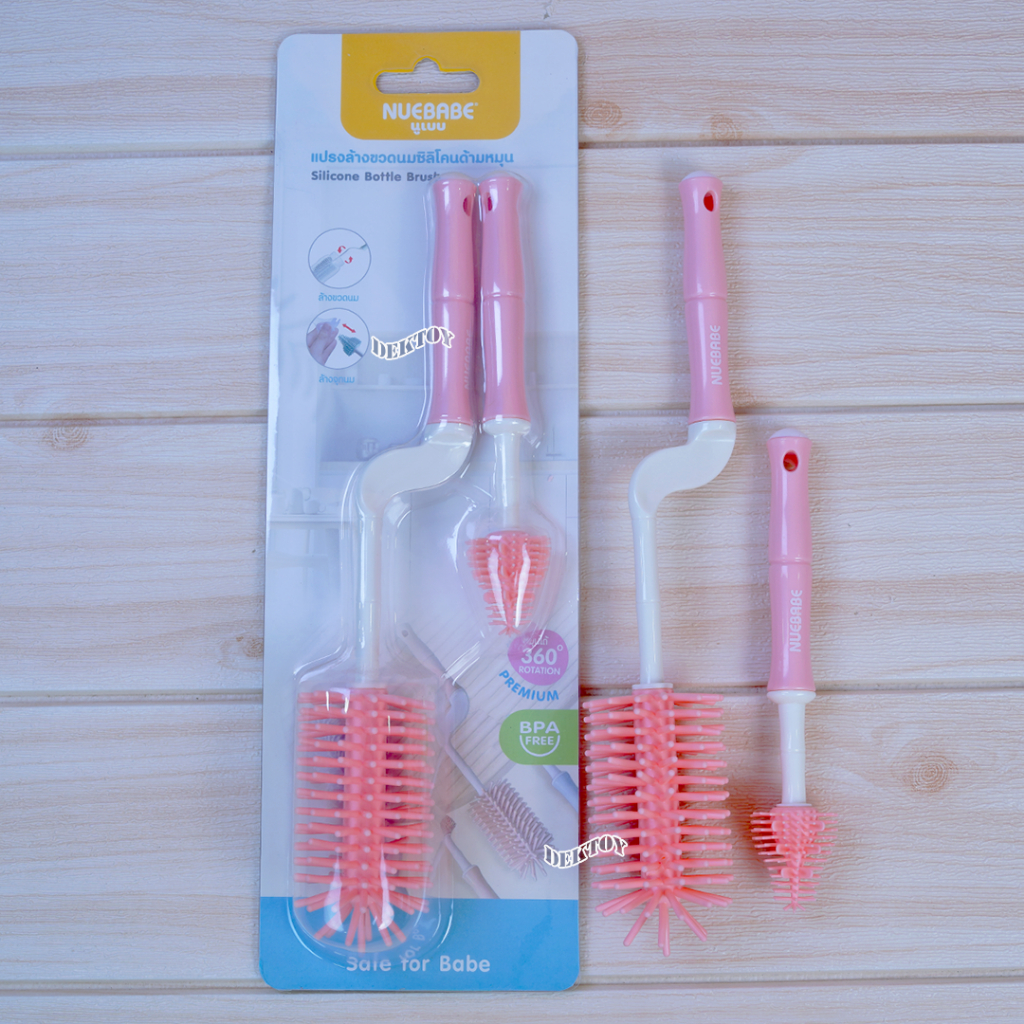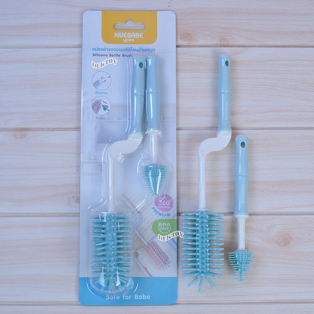 Nuebabe นูเบบ แปรงซิลิโคนล้างขวดนม หมุนได้ 360 องศา พร้อมที่ล้างจุกนมซิลิโคน BC0018