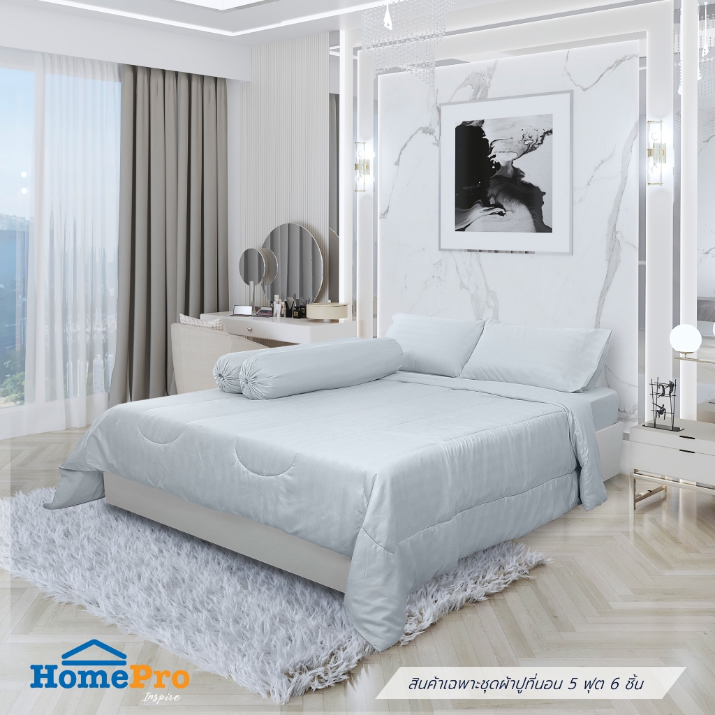 HOME LIVING STYLE ชุดผ้าปูที่นอน 5 ฟุต 6 ชิ้น HOME LIVING STYLE FLORENCE สีเทา จัดส่งโดย HomePro