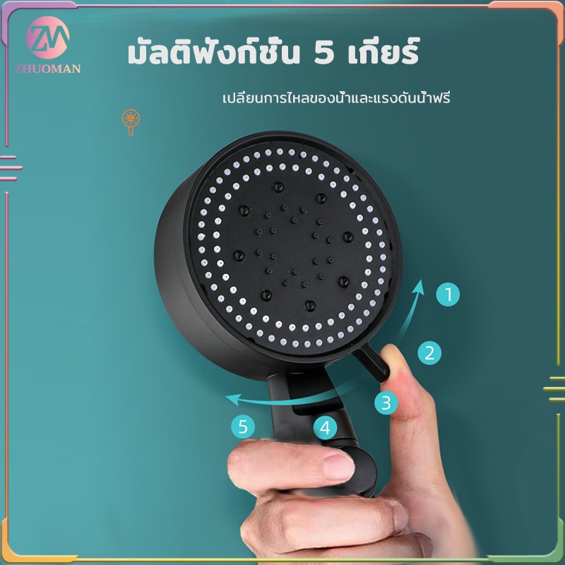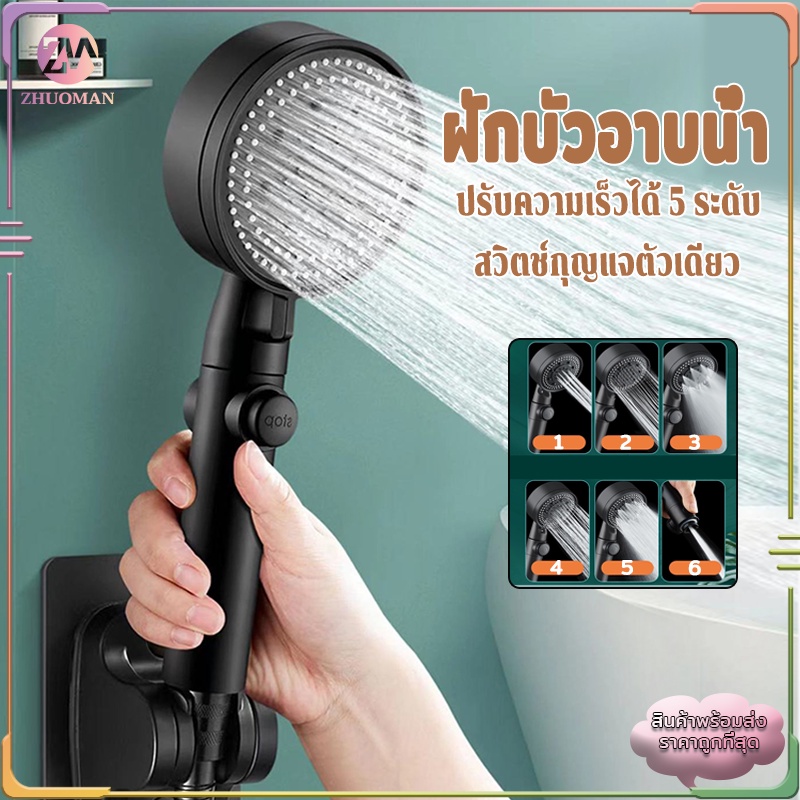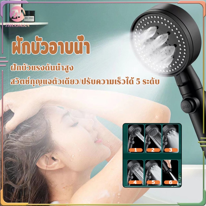 ฝักบัวอาบน้ำ ฝักบัวแรงดันสูง ปรับความเร็วได้ 5 ระดับไม่มีสนิมน้ำแรงและนุ่ม ช่วยนวดผิวกายให้สบาย ผ่อนคลาย