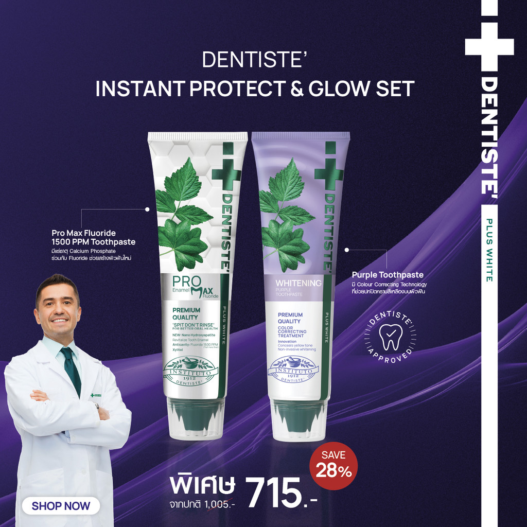 [แพ็คสุดคุ้ม!] Dentiste’ Instant Protect & Glow Set เติมเต็มเนื้อผิวฟัน ปรับฟันขาว เคลือบฟันให้ขาวธรรมชาติ