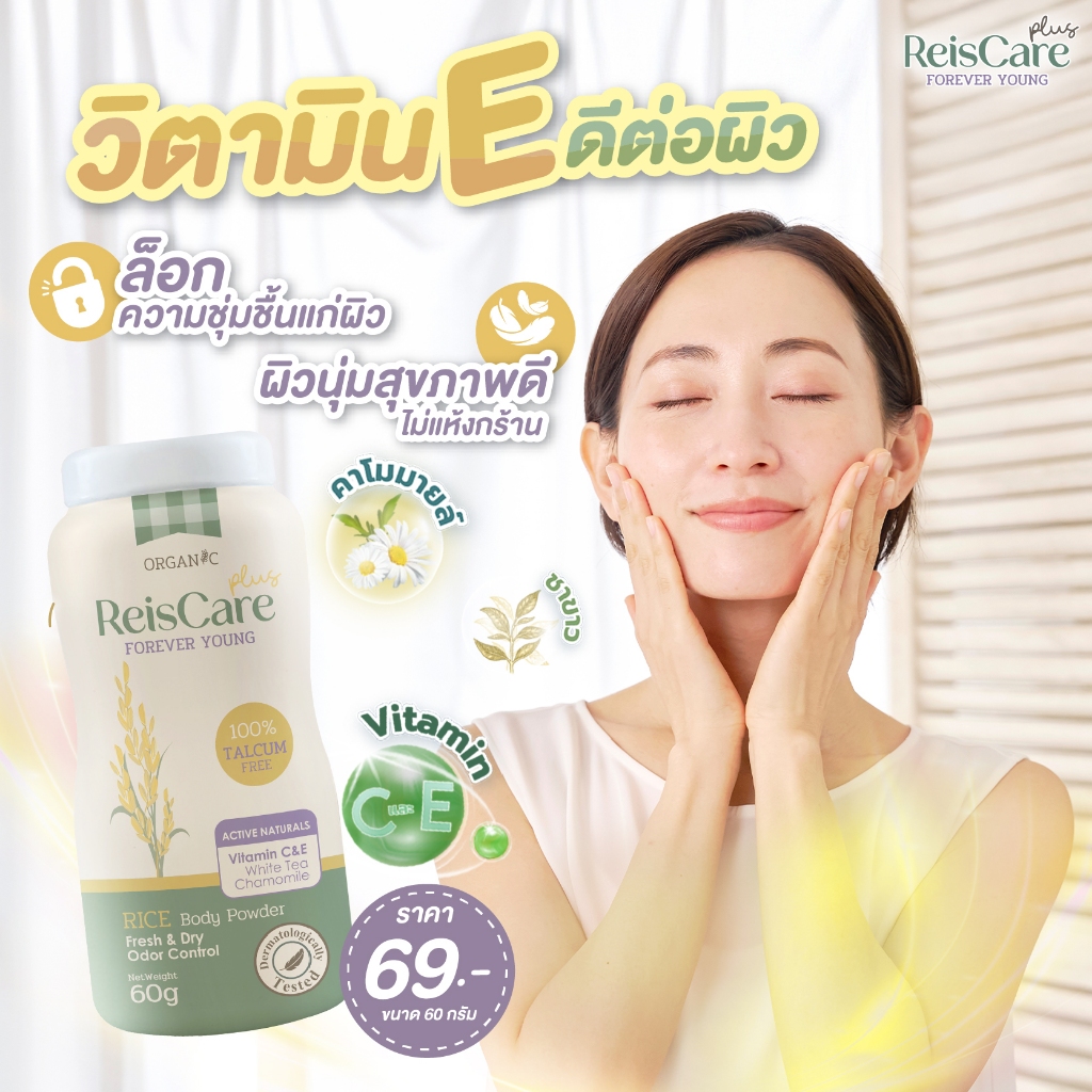 ReisCare Plus Body Powder Forever Young ไร้ซแคร์ พลัส บอดี้ พาวเดอร์ ฟอร์เอเวอร์ ยัง [60 g.] แป้งเด็ก แป้งทาตัว ออร์แกนิ