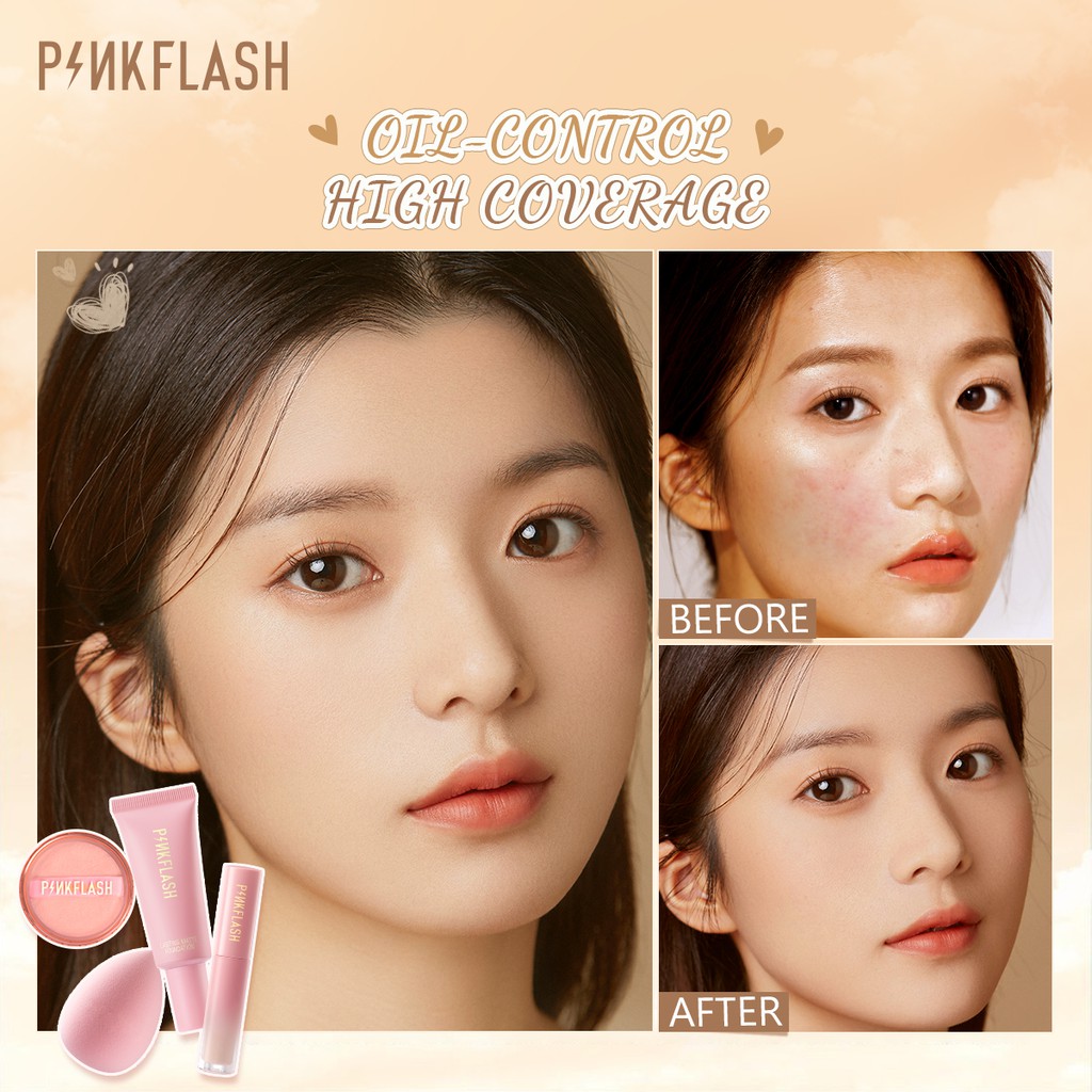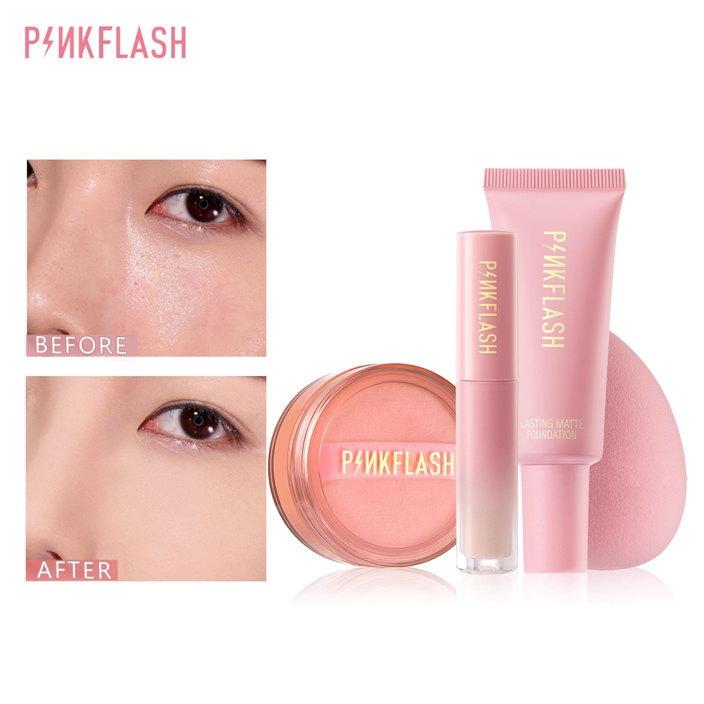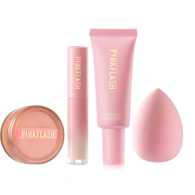 Pinkflash ชุดเครื่องสำอาง แป้งฝุ่น ควบคุมความมัน กันน้ำ ติดทนนาน 4 ชิ้น