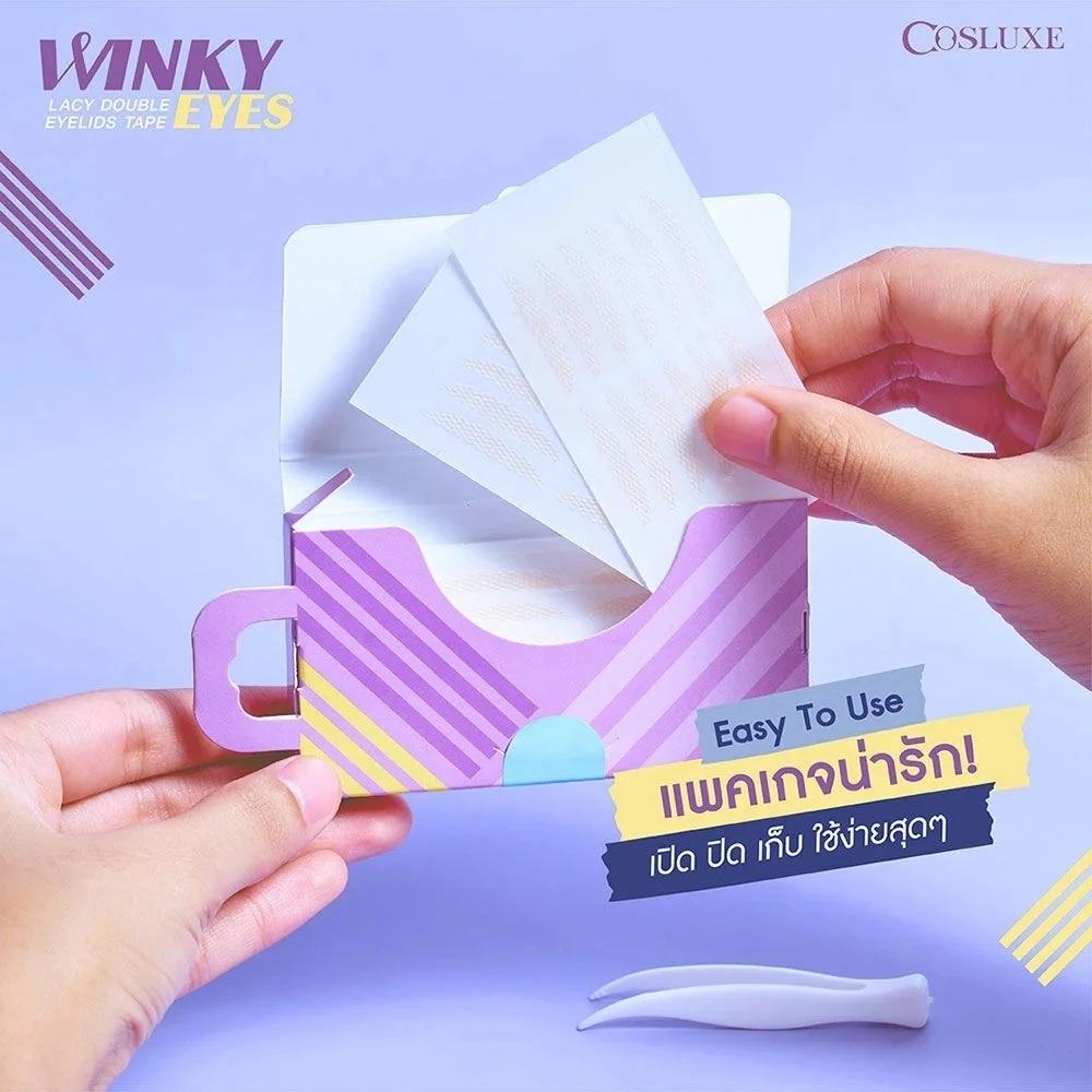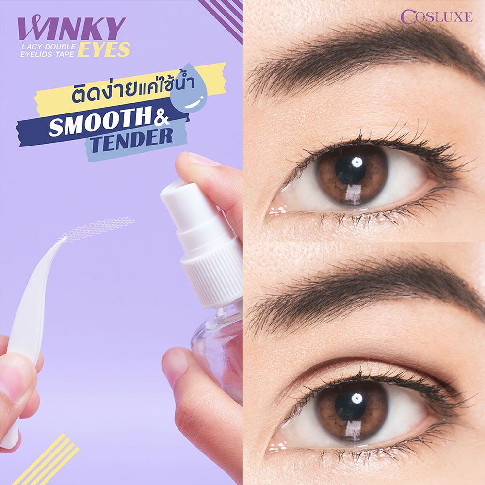 ตาข่ายติดตาสองชั้น คอสลุคส์ ติดตา 2 ชั้นไม่ใช้กาว Cosluxe Winky Eyes Lacy Double Eyelids Tape
