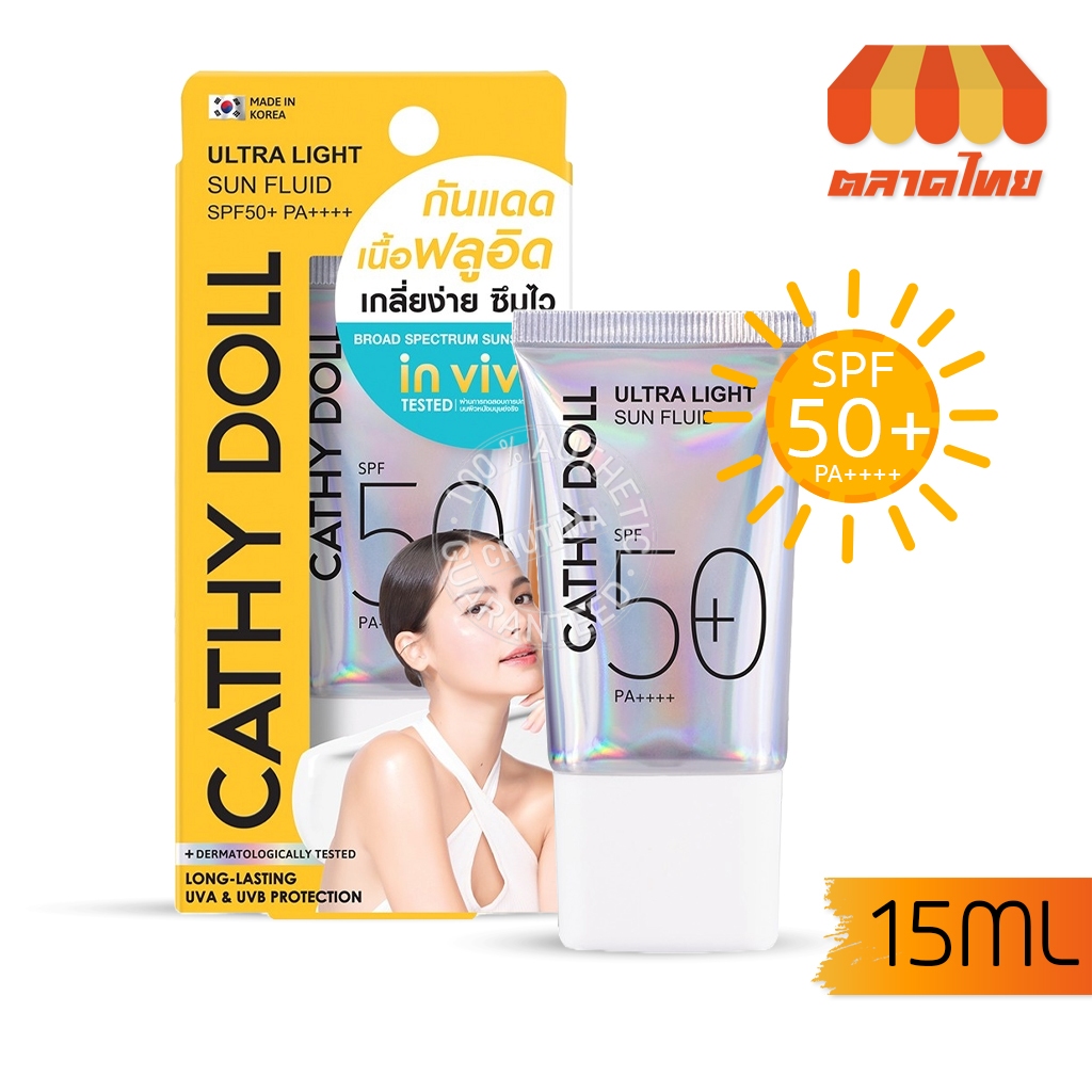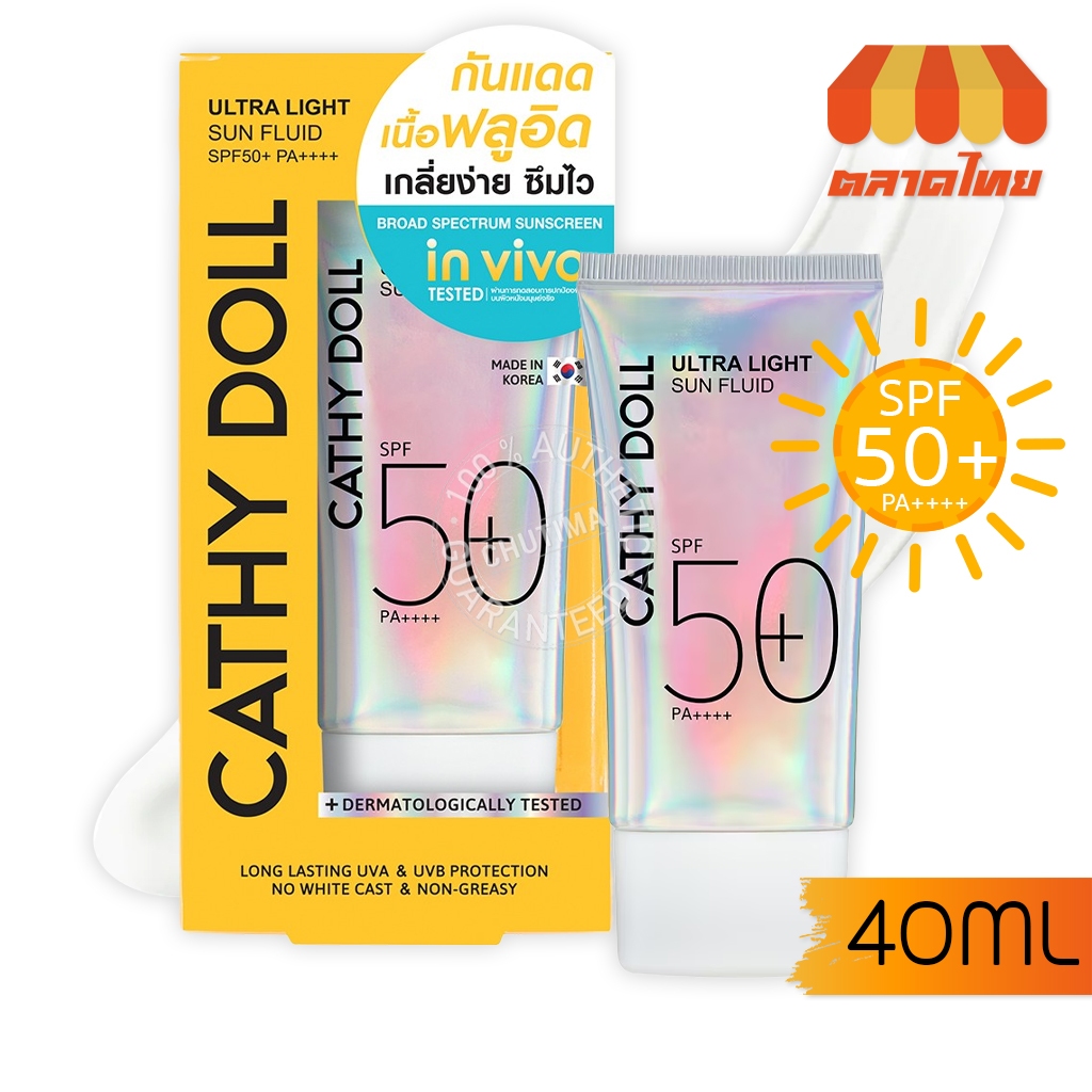 ครีมกันแดด เคที่ดอลล์ อัลตร้า ไลท์ ซัน ฟลูอิด Cathy Doll Ultra Light Sun Fluid SPF50 PA++++ 15/40 ml
