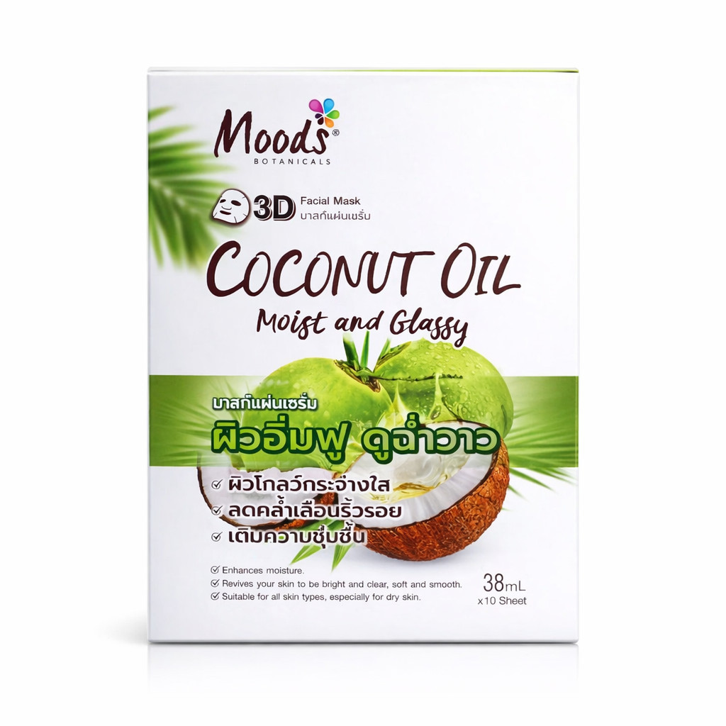 🔥แท้/ดีลสุดคุ้ม/ไลฟ์ทุกวัน🔥(กล่องx10ซอง) MOODS COCONUT OIL MOIST AND GLASSY 3D FACIAL MASK