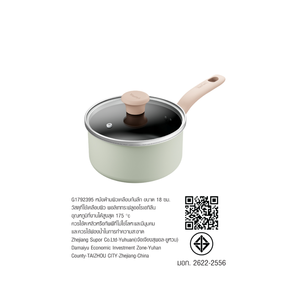 TEFAL หม้อพร้อมฝา So Matcha รุ่น G1792395 18 ซม. สีเขียวอ่อน รับประกันศูนย์2 ปี