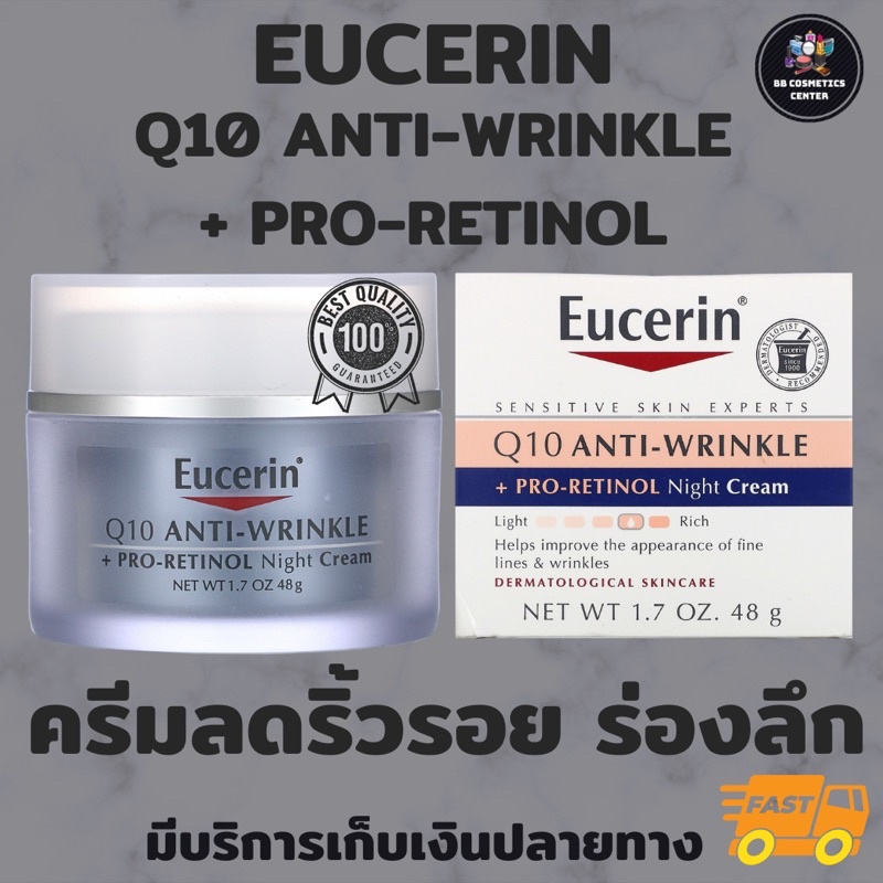 Eucerin Q10 Anti-Wrinkle Face Cream / Redness Relief Night Cream / Q10 Anti-Wrinkle + Pro-Retinol 48g ครีมลดริ้วรอยลึก