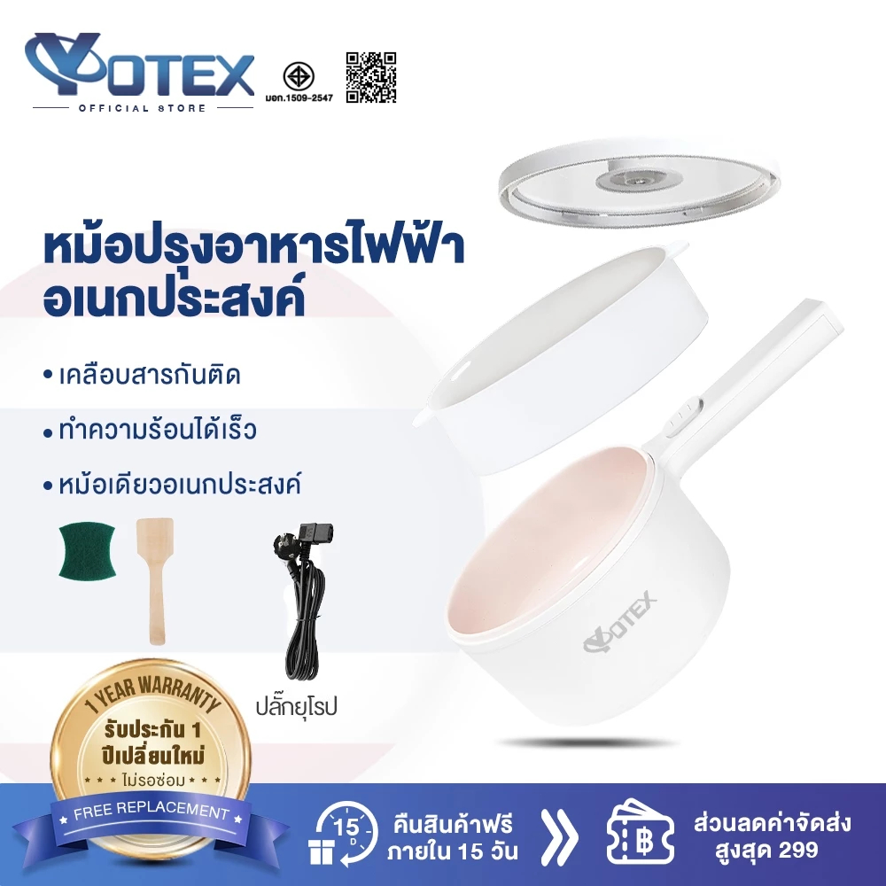 Yotex หม้อไฟฟ้า อเนกประสงค์ 2L ไม่ติดหม้อ กระทะไฟฟ้า เหมาะสำหรับ 2-3 คน ด้วยเรือกลไฟ ควบคุมอุณหภูมิได้ 2 ปุ่ม