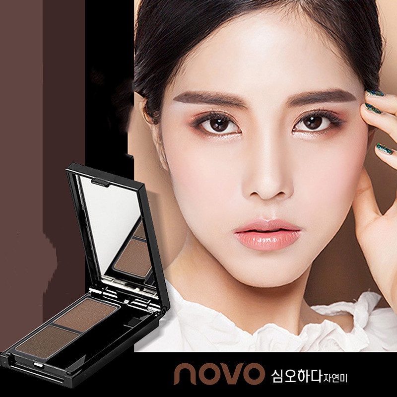 novoที่เขียนคิ้วตลับ คิ้วฝุ่นอัดแข็งตลับ กันน้ำ สไตล์เกาหลี Makeup 2in1 Eyebrow Powder YUE