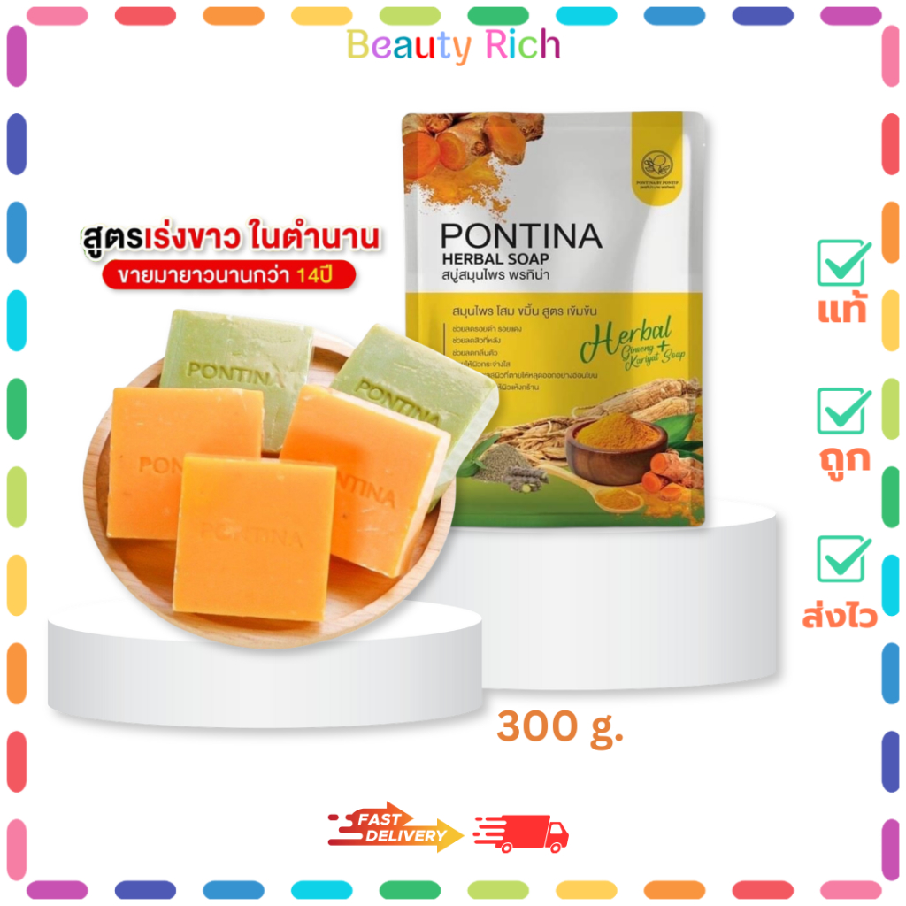 (1 ซอง) Pontina Herbal Soap – สบู่สมุนไพร พรทิน่า บาย พรทิพย์ โสมขมิ้นสูตรเข้มข้น (300 g.)