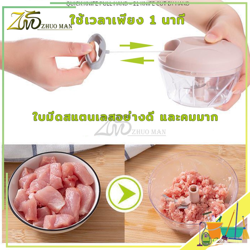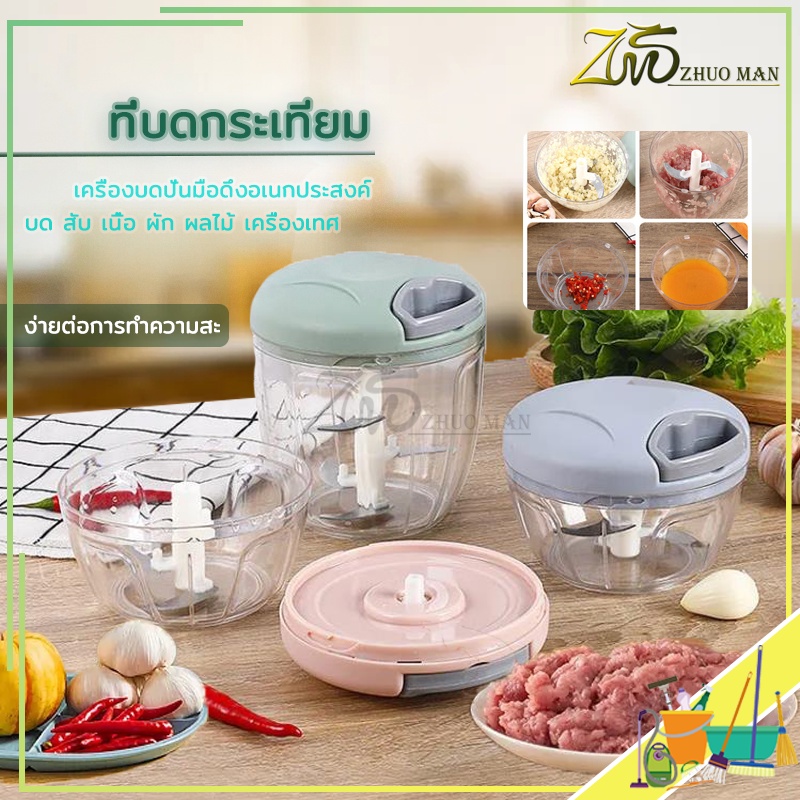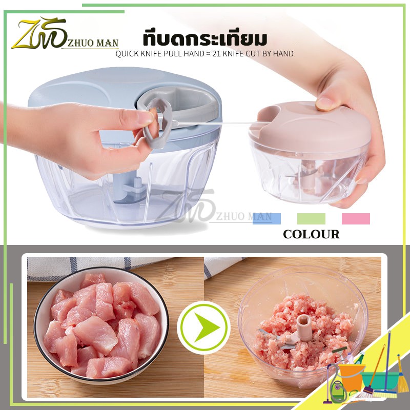 เครื่องบดปั่นมือดึง ปั่-นเครื่อ-งเทศ พกพาสะดวก รวดเร็ว พลาสติกทนทาน แข็งแรง ผลไม้ มี 2 ขนาด