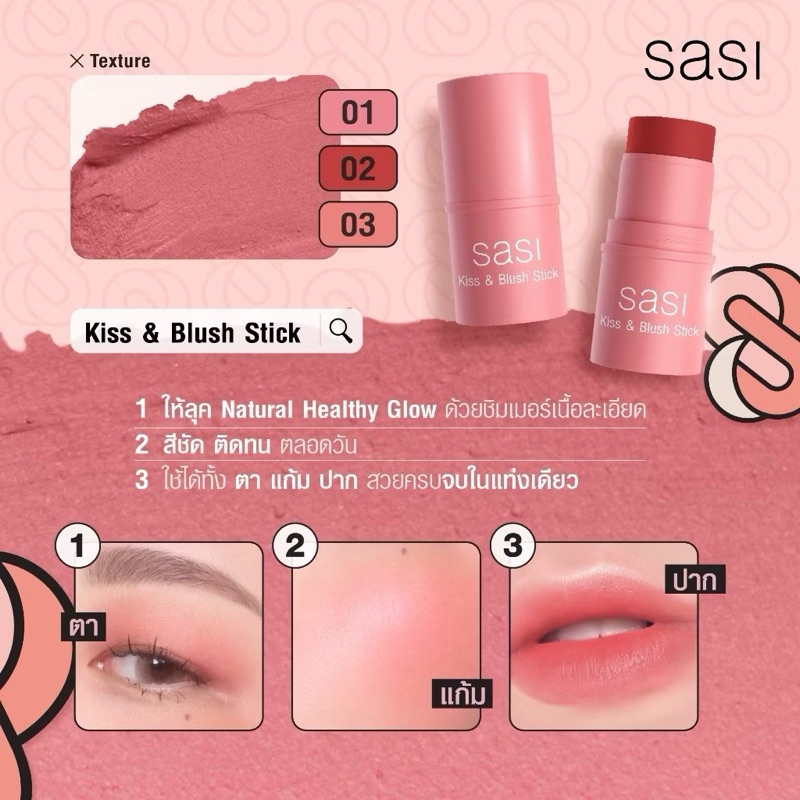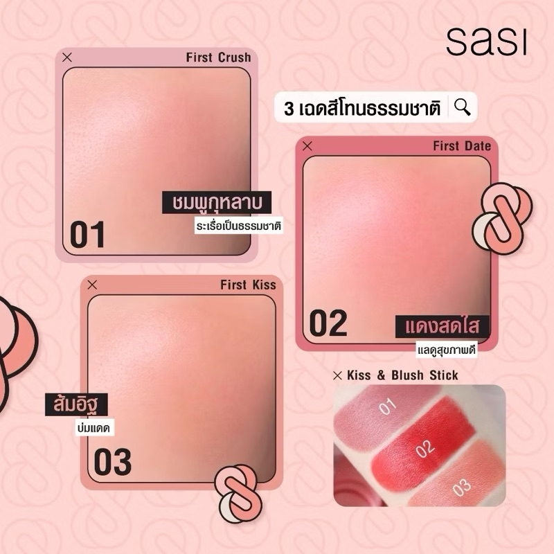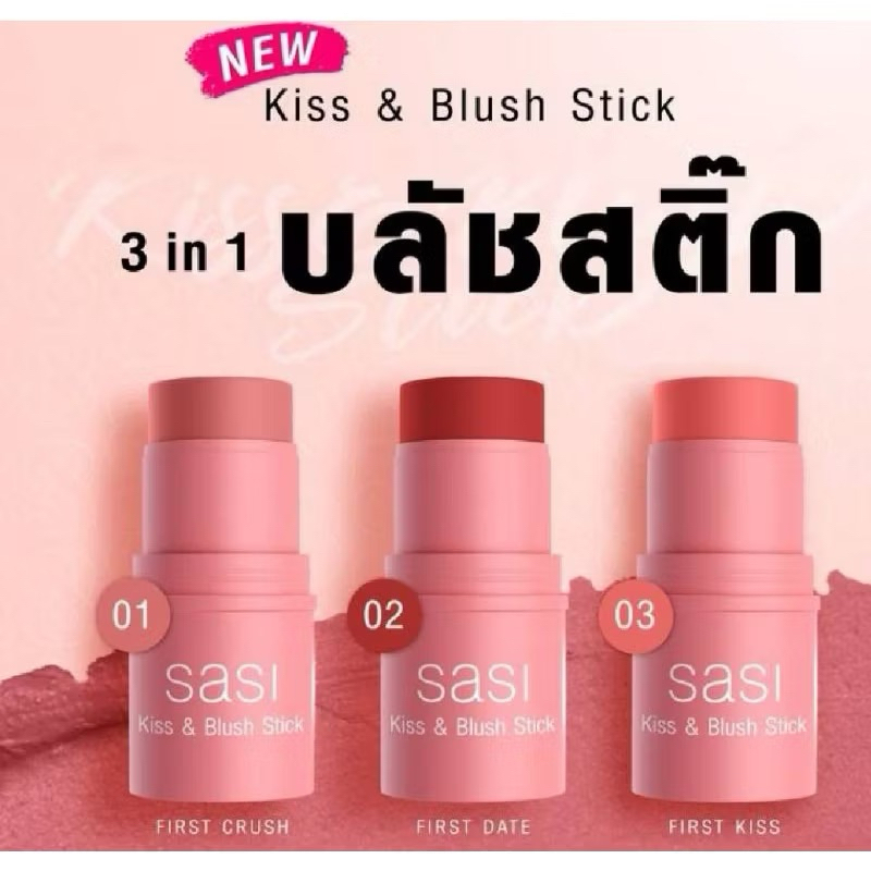 Sasi Kiss & Blush Stick ศศิ คิส แอนด์ บลัช สติ๊ก บลัชออนเนื้อครีม 3 in 1สวยครบ จบในแท่งเดียว ขนาด 4 กรัม