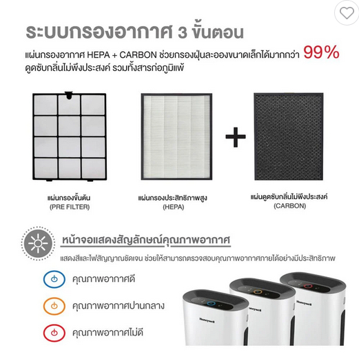แผ่นกรองเครื่องฟอกอากาศ HONEYWELL CARBON+HEP A5