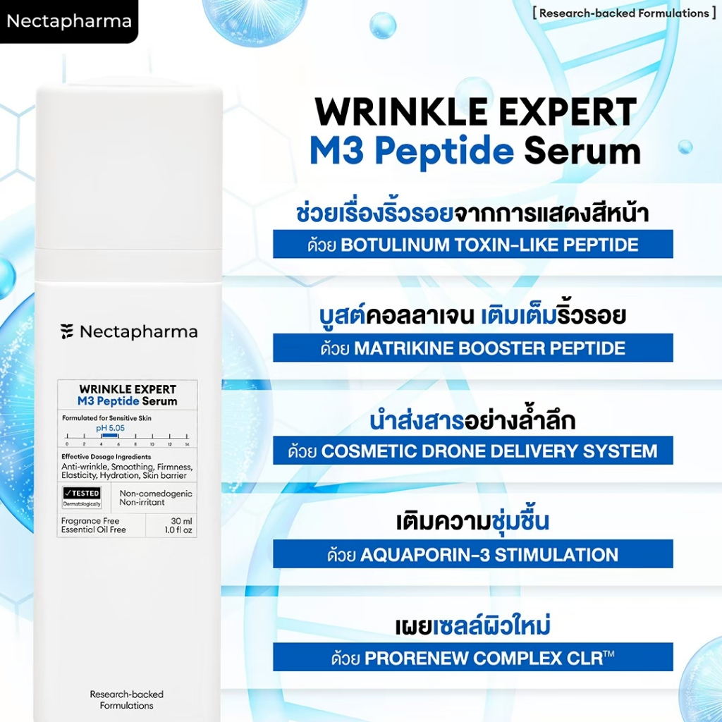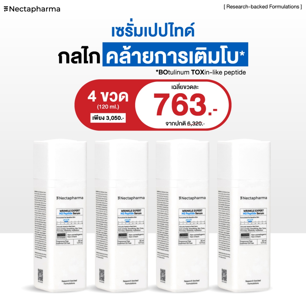 [4 ขวด ลดเพิ่ม 200 บ.] WRINKLE EXPERT M3 Peptide Serum เซรั่มลดริ้วรอย ด้วยเปปไทด์กลไกคล้า ยโบ เปปโบเซรั่ม