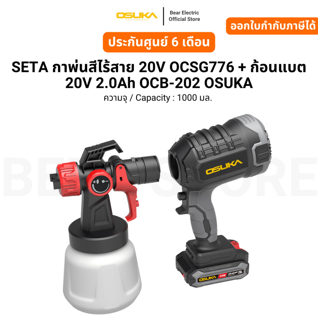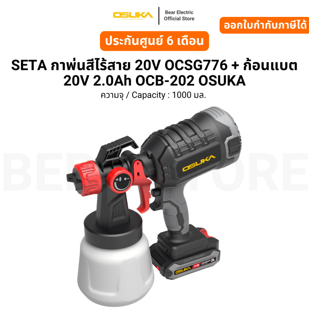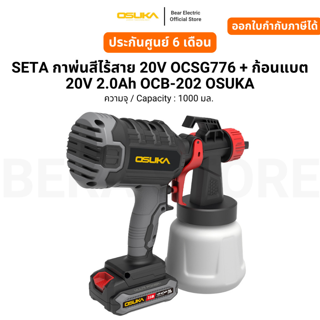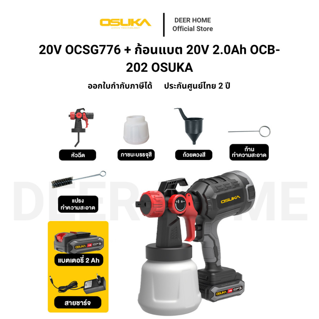 กาพ่นสีไร้สาย SET A 20V OCSG776 + ก้อนแบต 20V 2.0Ah OCB-202 OSUKA รับประกัน 6 เดือน