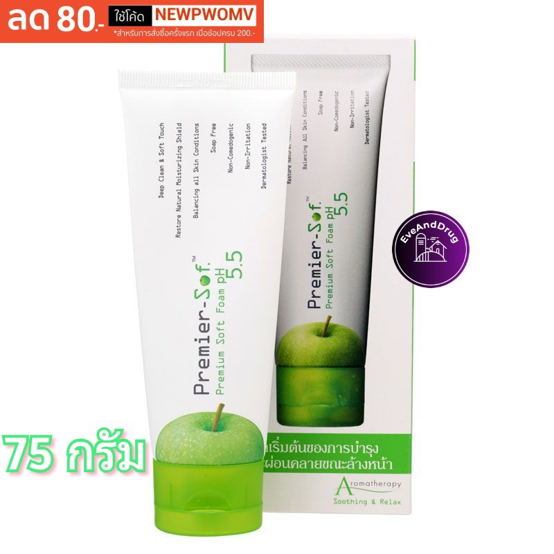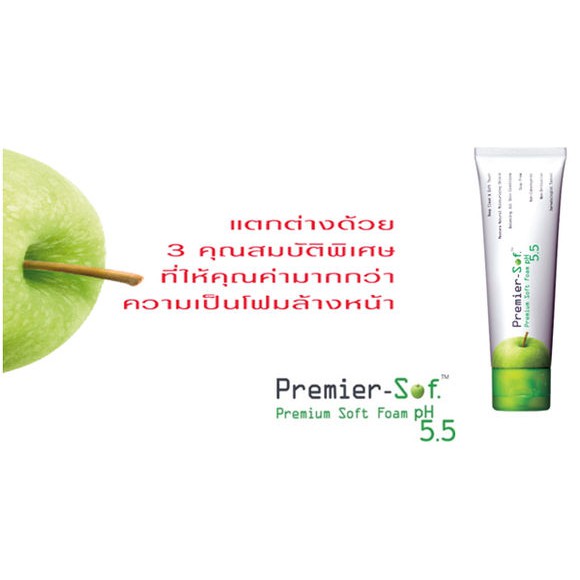 Premier Sof Premium Soft Foam โฟมล้างหน้า พรีเมียร์-ซอฟ 75กรัม 2.5ออน (1หลอด) Apple Amino protein