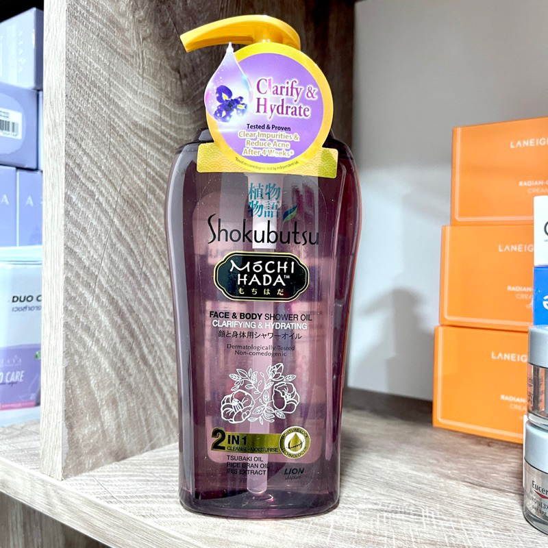Shokubutsu Mochi Hada Clarifying & Hydrating Face & Body Shower Oil 525ml ออยอาบน้ำไห้ผิวใสและชุ่มชื้น