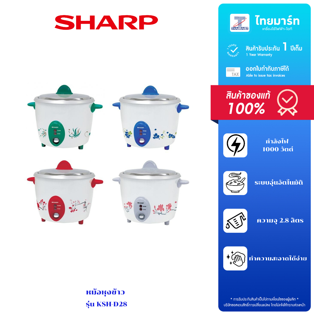 SHARP หม้อหุงข้าว (2.8 ลิตร) รุ่น KSH-D28 คละสี รับประกัน 1 ปี