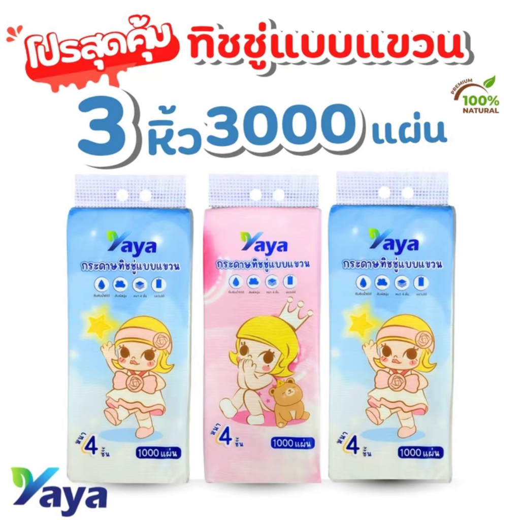 YAYA ทิชชู่แขวน ลาย Baby กระดาษเช็ดมือและเช็ดปาก แบบติดผนัง 1000 แผ่น