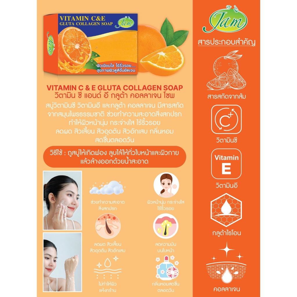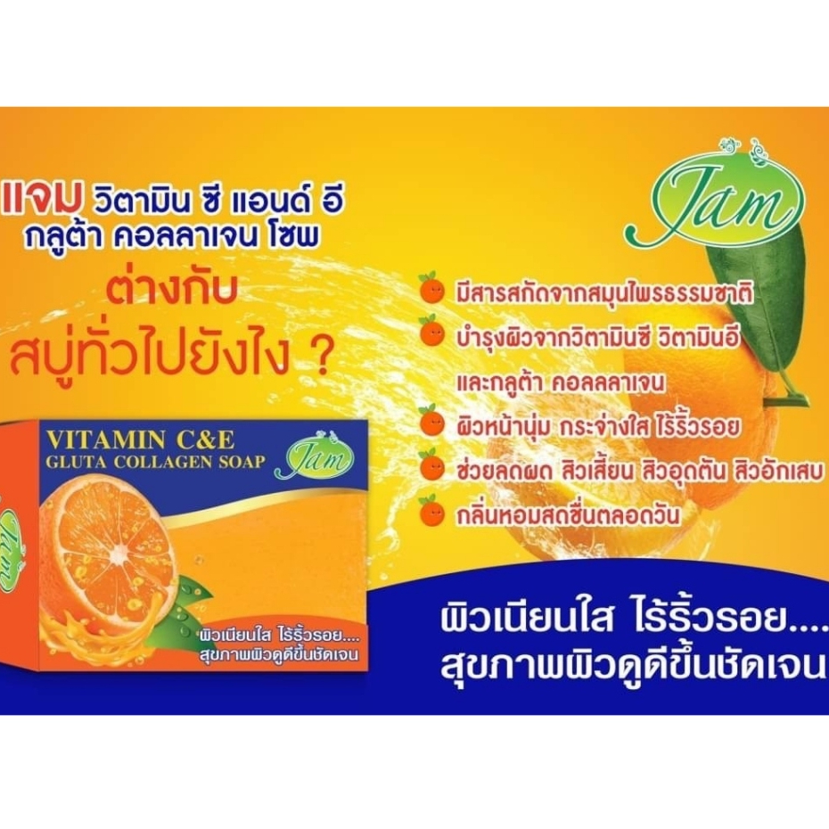 (แพ็ค 4 ก้อน) JAM VITAMIN C&E GLUTA COLLAGEN SOAP แจม วิตามิน ซี แอนด์ อี กลูต้าคอลลาเจนโซพ (130 g.)