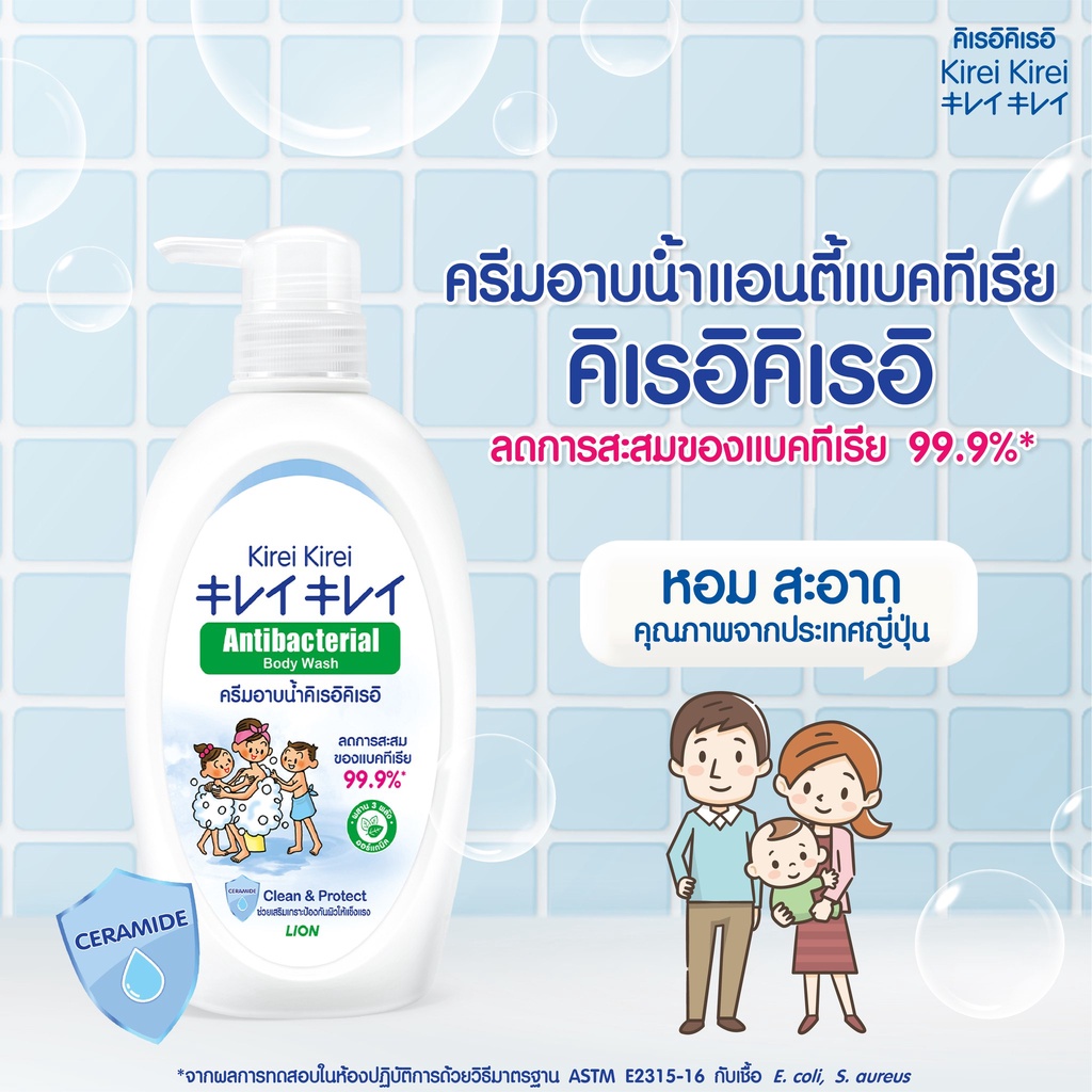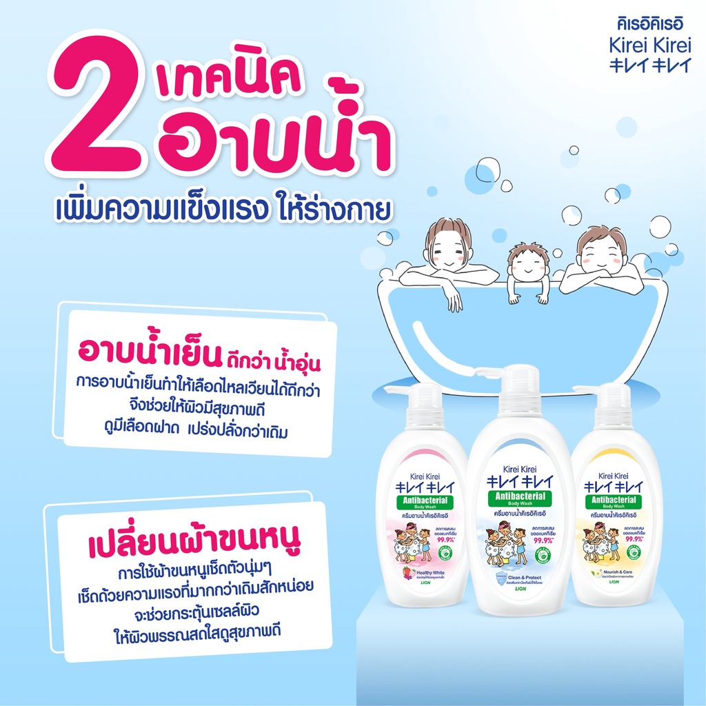 คิเรอิ คิเรอิ ครีมอาบน้ำถุงเติม/ขวดปั้ม แอนตี้แบคทีเรีย 400-500 มล. ช่วยลดการสะสมของแบคทีเรีย มี 3 สูตรให้เลือก