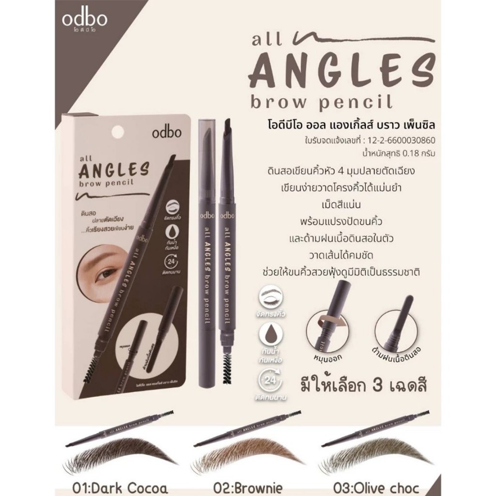 ดินสอเขียนคิ้ว โอดีบีโอ ออล แองเกิ้ลส์ บราว เพ็นซิล ODBO ALL ANGLES BROW PENCIL OD7012