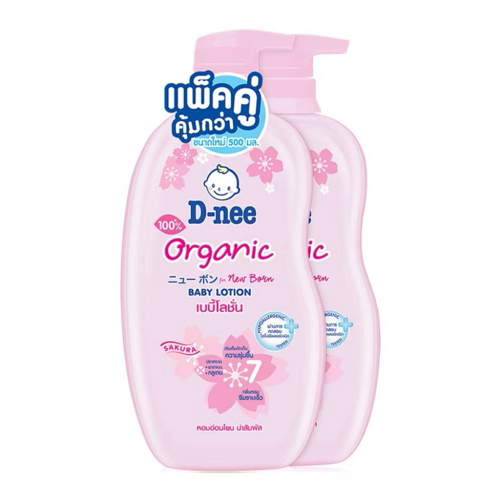 D-nee Baby Lotion Sakura ดีนี่ เบบี้โลชั่น สีชมพู ซากุระ ขวดใหญ่ ฝาปั้ม 500 มล.
