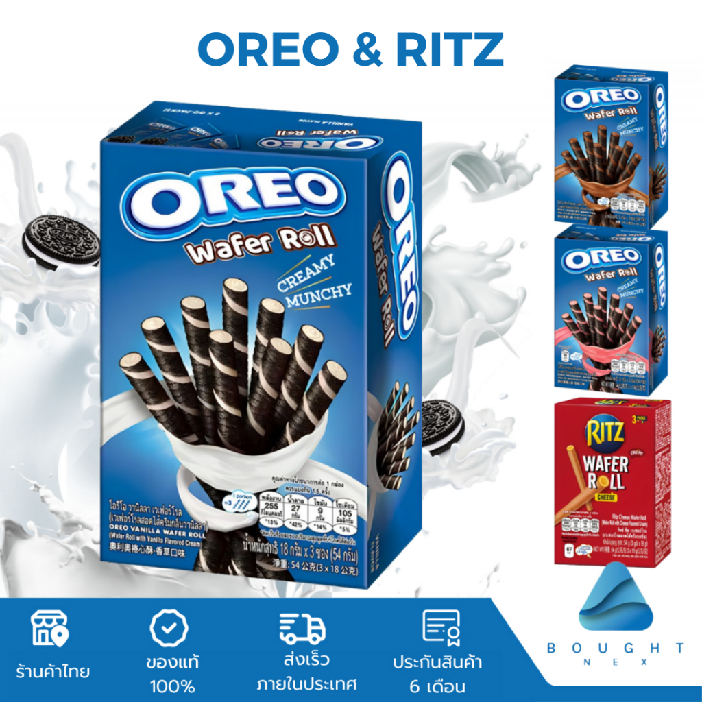 Oreo & Ritz Original โอรีโอ้ ริทซ์ 54 กรัม แครกเกอร์ บิสกิต ออริจินัล เวเฟอร์โรล ขนม สอดไส้ครีม ช็อคโกแลต สตอเบอร์รี่