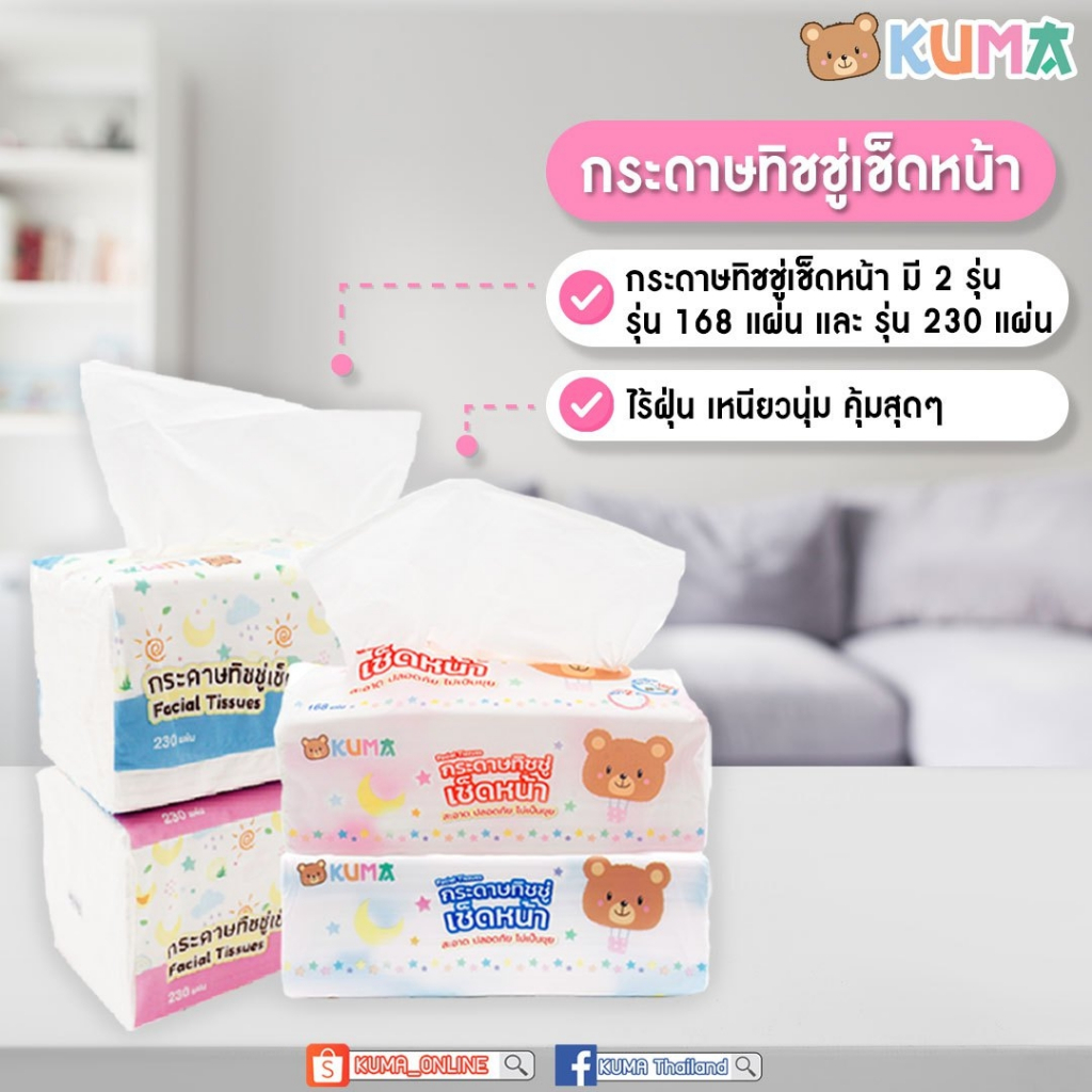 [ยกแพ็ก] KUMA Facial Tissue คุมะ เฟชเชียล กระดาษทิชชู่เช็ดหน้า หนา 2 ชั้น 168/230 แผ่น 1 หิ้ว