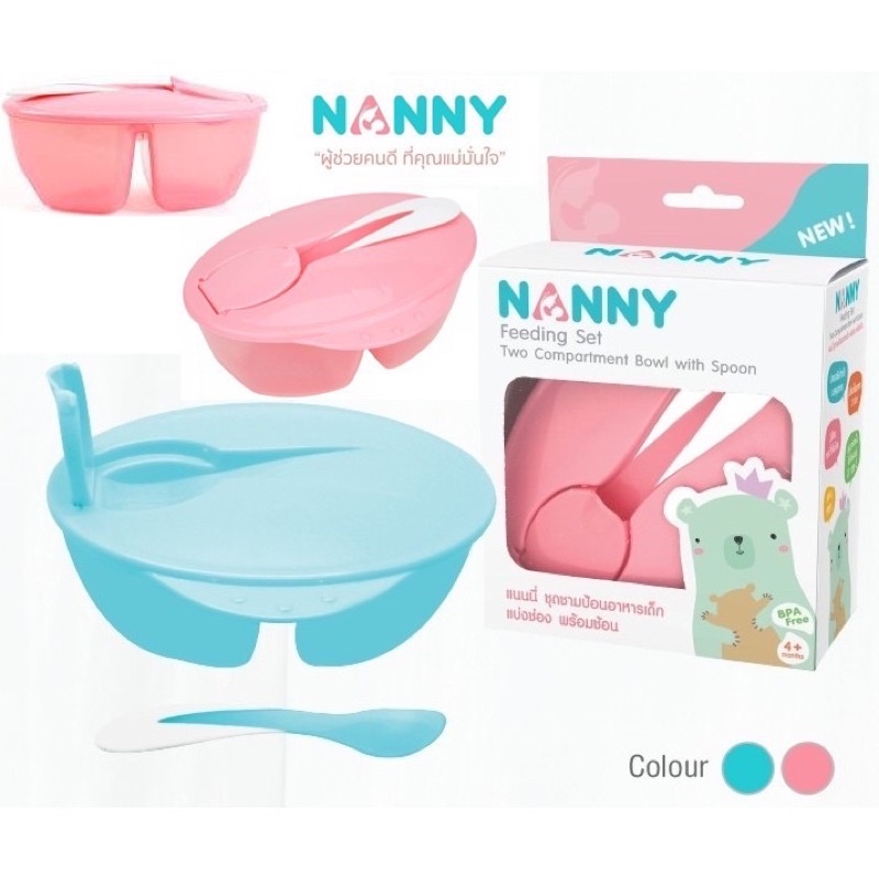 Nanny ชามป้อนอาหารเด็กแบ่งช่อง + ช้อน (สีชมพู) (N105-C )