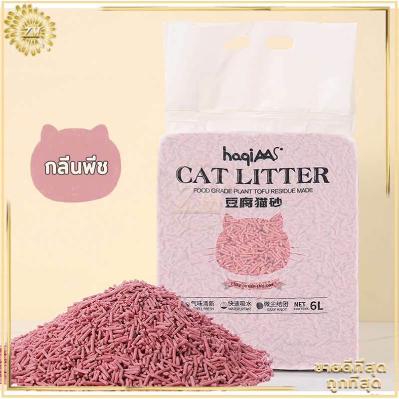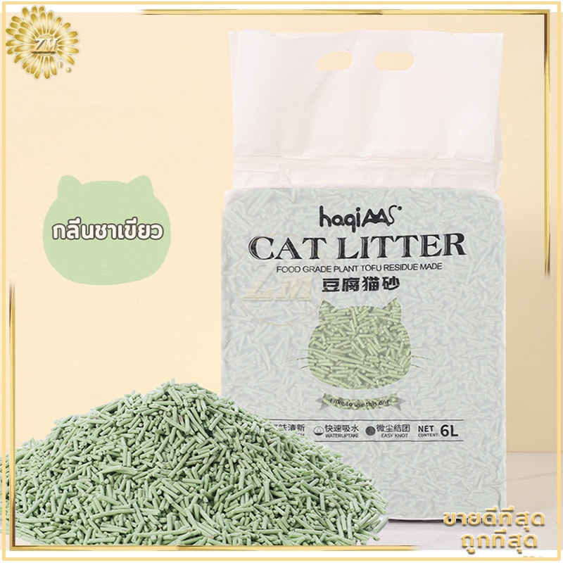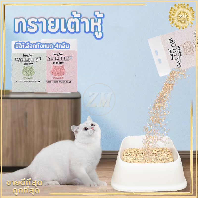 ทรายแมว 6 ลิตร ทรายแมวเต้าหู้ แบบใหม่ ทรายเต้าหู้ ออร์แกนิค100% ผลิตจากกากถั่วเหลืองธรรมชาติ 4 กลิ่น ปลอดภัย