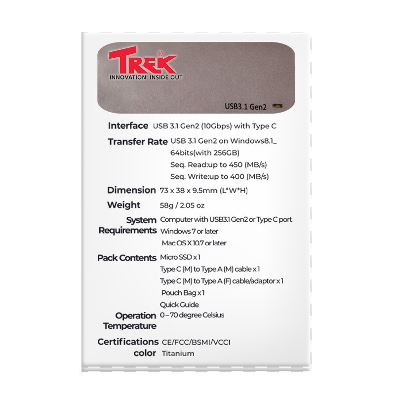 Trek Micro SSD | Portable External SSD| High Speed USB 3.1 Gen 2 Type C ( 256GB/512GB/1TB)