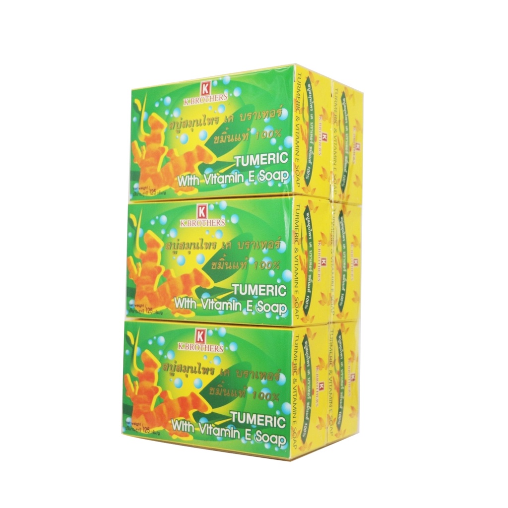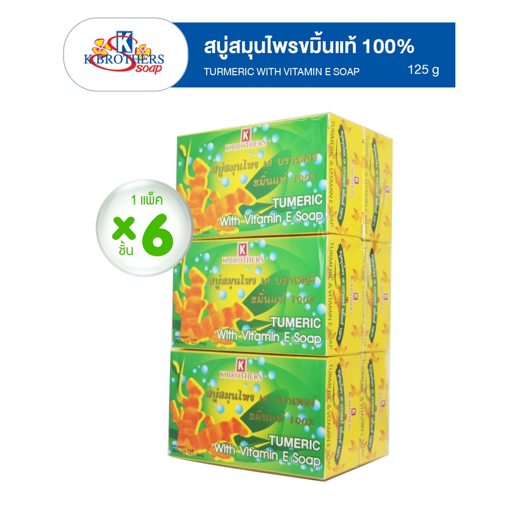 [ 6 ก้อน ] สบู่สมุนไพรขมิ้นแท้ เคบราเทอร์ สบู่สมุนไพร K.Brothers Turmeric & vitamin E Soap CODE019