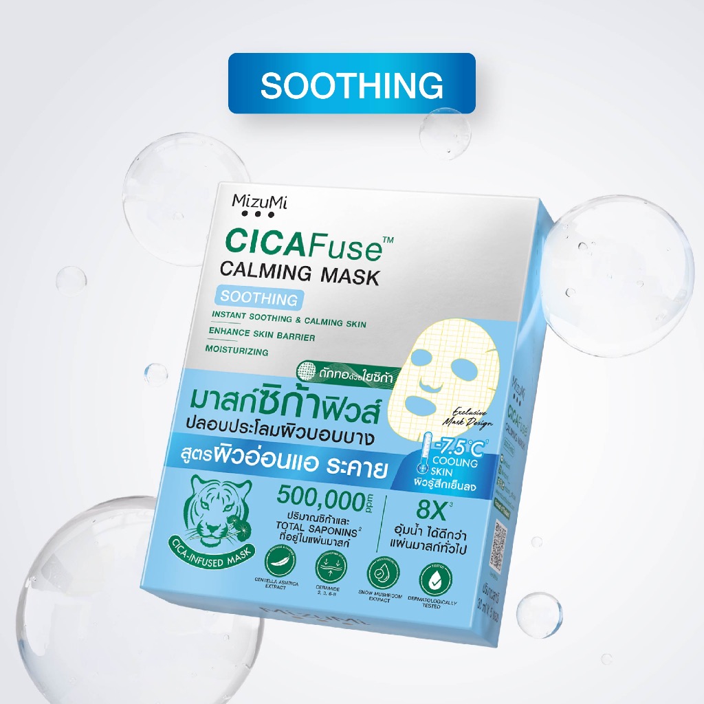 MizuMi CICAFuse Calming Mask Soothing (1กล่อง x 5ซอง) มาสก์เสือพีพี สูตรปลอบประโลมผิว ลดการระคายเคือง ผิวชุ่มชื้น