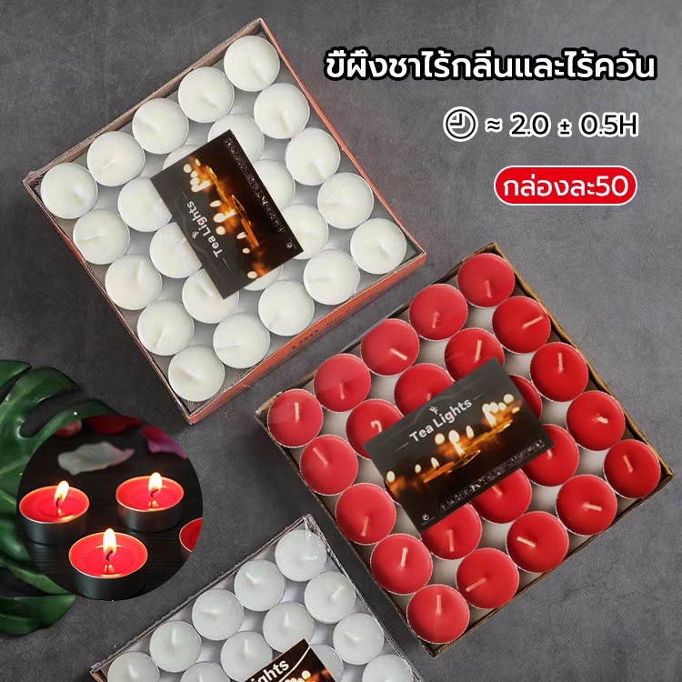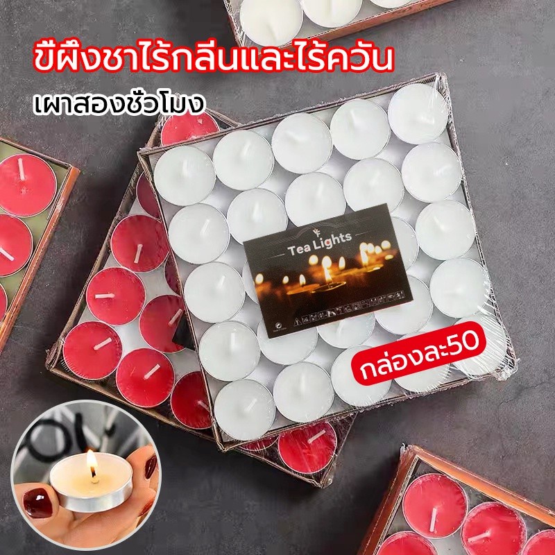 เทียนหอม ไม้ประคบ เทียนหอม เทียนทีไลท์ 50 ถ้วย เทียนถ้วยทีไลท์ เทียนอโรม่า เทียนอุ่นอาหาร เทียนสปา ไม่มีกลิ่น ไม่มีควัน