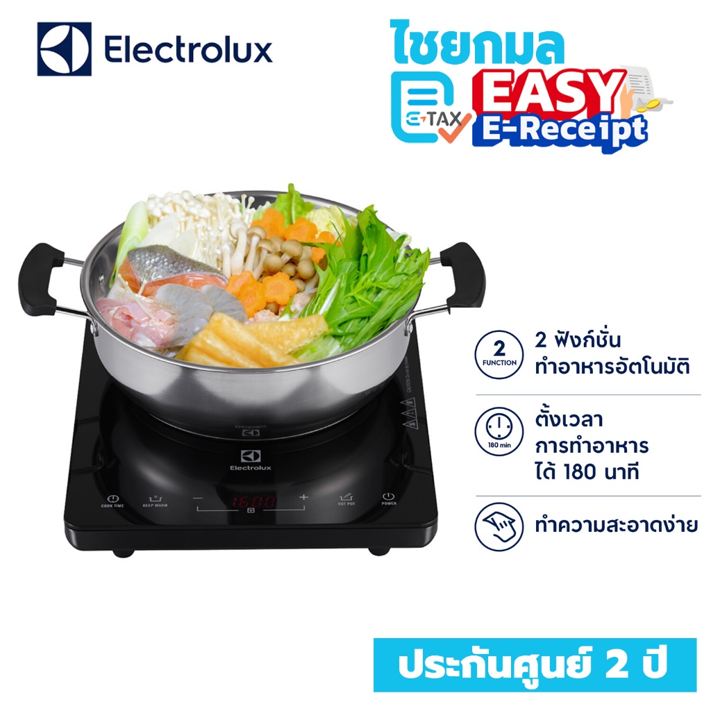 [เตาไฟฟ้า พร้อมหม้อ] Electrolux เตาแม่เหล็กไฟฟ้า กำลังไฟ 2,000 วัตต์ รุ่น ETD29PKR / รับประกัน 2 ปี หม้อชาบู