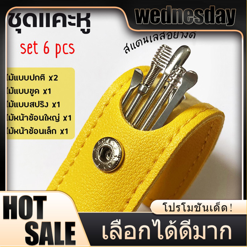 ที่แคะหู สแตนเลสคุณภาพดี ครบชุด เครื่องมือทำความสะอาดหู ชุดแคะหูไม้แคะหูแบบเกลียว แก้ขี้หูตัน Ear Pick ไม้แคะหู 6 ชิ้น